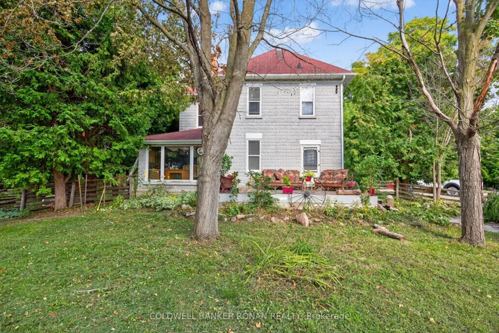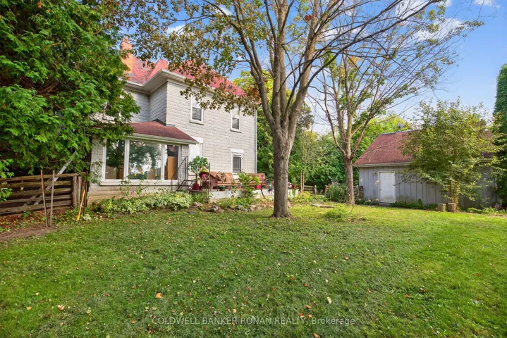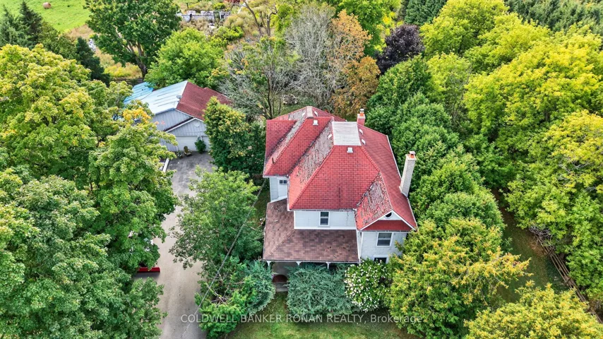 Nestled among rolling farmland, this picturesque 1.17-acre property offers a storybook setting full of charm and character. This Century home features a welcoming front veranda, flagstone walkways, and a covered front porch, a spacious back deck and detached garage/workshop. Surrounded by mature trees and lush perennial gardens, the property provides a tranquil, park-like atmosphere. A separate back entrance to the office area with floor to ceiling window with west views & stunning sunsets also makes it a great flexible workspace. Offering approximately 2,600 sq. ft. of living space, the home boasts large principal rooms, Primary Bedroom w/Walk-in Closet & 5pc Ensuite Bath, Large Country Kitchen w/Walk-in Pantry, Walk-in Closet/Mud Room w/entrance to back deck, original stained-glass windows. The third floor features a spacious games room/attic that could easily serve as a games room or creative retreat with an oversized 5 paned window with south facing views. The detached garage (23.6 x 21.10) includes an attached workshop (19.10 x 43.3) with a separate driveway/parking and oversized garage door ideal for a home-based business. This property is fully fenced & gated. Conveniently located just north of Hwy 9 with quick access to Highways 27 and 400, this unique property combines country living with commuter convenience.