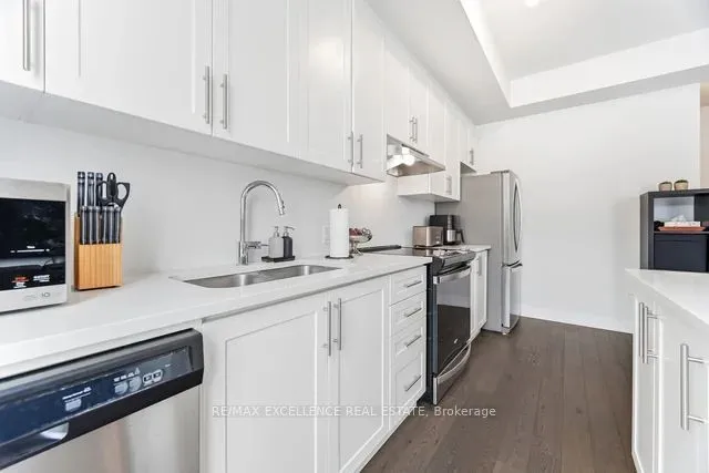 Welcome to this impeccably maintained, sun-filled residence in the heart of Woodbridge. This modern 2-bedroom, 2bathroom home seamlessly blends style, comfort, and convenience. Expansive windows fill the open-concept layout with natural light, highlighting upgraded stainless steel appliances and refined contemporary finishes throughout. A versatile flex space offers the perfect option for a home office, guest area, or private retreat. Step out onto the spacious terrace – ideal for relaxing or entertaining. This property features rare tandem parking with two dedicated spaces. Ideally situated just minutes from Highways 400, 427, and 407, and within walking distance to the vibrant Islington Village Centre, residents enjoy convenient access to dining, shopping, everyday amenities, and top-rated schools. An exceptional opportunity for first-time buyers, downsizers, or investors alike.