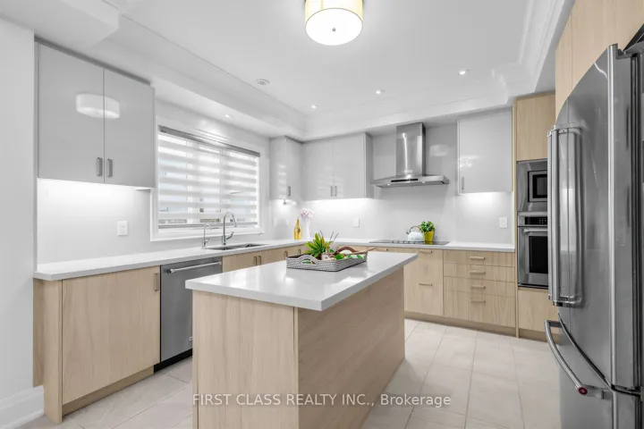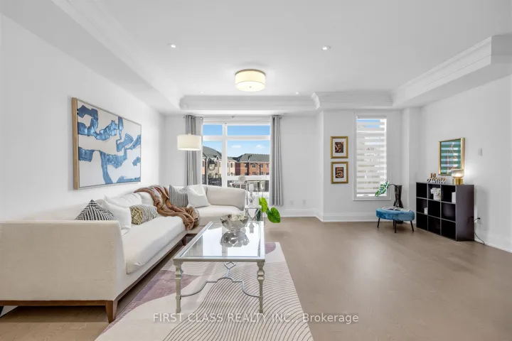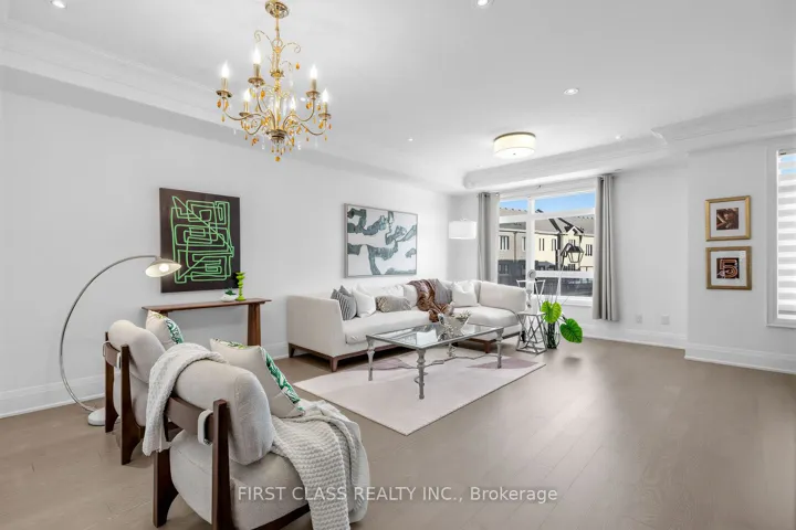 Luxury Beautiful 3 Bedrooms With Double Car Garage Townhouse Located At High Demand Area, Approx 2700 Sq Ft Living Space, 9 Ft Ceiling High On Main, Second And Third Floor, Excellent Layout, Modern Kitchen With Quartz Counter-Top And Stainless Steel Appliances, Oak Staircase With Iron Pickets, Hardwood Floor Thru-Out, Pot Lights, Hugh Terrace, Close To Public Transit, Plaza, Restaurant, School, Park, Go Train And Hwy 404/407.