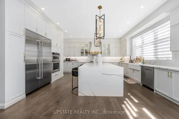 Experience refined living with exquisite custom finishes and a premium walkout lot backing onto a tranquil ravine. This exceptional residence presents a rare opportunity to own a truly remarkable home. Offering approximately 5,200 sq. ft. of luxurious living space above grade, it is thoughtfully designed for upscale living and effortless entertaining. Nestled on a quiet, family-friendly street, the home features 10-foot ceilings on the main floor and 9-foot ceilings on the second floor, creating an open and elegant atmosphere throughout. The chef-inspired gourmet kitchen is beautifully appointed with built-in appliances, an extended quartz breakfast island, a spacious center island, and upgraded upper cabinetry enhanced with pot lights. A generous walk-in pantry and breakfast area overlook the serene ravine setting, offering picturesque views and abundant natural light. The inviting family room, also overlooking the ravine, showcases a stunning custom 3D feature wall, a cozy gas fireplace, and pot lights throughout, creating a warm yet sophisticated space for gatherings. The main floor also features a private home office with a large window, ideal for working from home. Additional highlights include custom built-in closets and fully upgraded designer bathrooms with frameless glass showers, reflecting meticulous attention to detail.