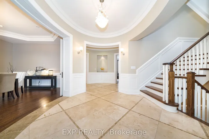 An exceptional custom-built luxury residence set on an expansive 45 x 240 ft premium lot in the heart of prestigious South Richvale, surrounded by distinguished multi-million-dollar estates. This bright, south-facing home presents an elegant natural stone exterior and refined architectural presence, complemented by soaring 10-foot ceilings on the main level and 9-foot ceilings above. Thoughtfully designed interiors showcase impeccable craftsmanship, featuring a bespoke gourmet kitchen with an oversized centre island, granite countertops, and integrated high-end appliances, seamlessly flowing to a walk-out breakfast area and private patio. Rich hardwood, limestone, and marble flooring anchor the home’s sophisticated aesthetic, enhanced by extensive wainscoting, chair rail detailing, skylight, and three beautifully appointed fireplaces. A custom-designed office with coffered ceiling and built-in shelving offers an ideal executive workspace. The professionally finished walk-up basement is filled with natural light and includes above-grade windows, a generous L-shaped recreation area, additional bedroom, and full bathroom, perfect for extended family or entertaining. Additional highlights include a rare tandem three-car garage, interlock driveway and patio, heated floors, built-in furnishings, sprinkler and alarm systems, and abundant pot lighting throughout. Ideally positioned within walking distance to Yonge Street, top-ranked schools, public transit, and just minutes to Highway 407, this residence delivers refined luxury living in one of Richmond Hill’s most coveted enclaves.