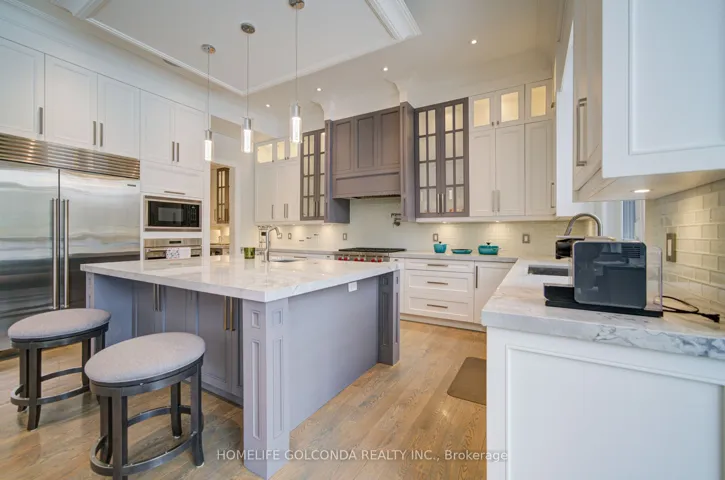 An exquisite custom-built estate showcasing outstanding craftsmanship and meticulous attention to detail, ideally situated in the prestigious South Richvale community. Offering over 6,000 sq. ft. of luxurious finished living space, this exceptional residence is designed with premium materials, refined architectural elements, and superior quality throughout.The striking limestone exterior and luxury windows create a grand first impression, while the thoughtfully designed interior features 11-foot ceilings on the main floor, 10-foot ceilings on the second level, and 9-foot ceilings in the professionally finished basement. Elegant marble and rich hardwood flooring extend across both levels, complemented by an impressive oversized skylight that fills the home with natural light. A private elevator provides seamless access to all floors, while numerous LED pot lights and a fully integrated sound system with built-in speakers enhance both ambiance and functionality.The gourmet chef’s kitchen is beautifully appointed with luxurious stone countertops, high-end finishes, and a separate serving area-perfect for formal entertaining and family gatherings. Four fireplaces throughout the home add warmth, comfort, and architectural sophistication.The walk-up basement offers exceptional additional living space, featuring heated floors, a spacious recreation room with fireplace, a wet bar, and one bedroom with a full bathroom-ideal for extended family, guests, or entertaining. Additional features include a comprehensive security system with cameras, central vacuum, and an automatic irrigation system for effortless maintenance.A rare opportunity to own a distinguished luxury residence in one of the most sought-after neighborhoods, offering elegance, comfort, and modern convenience at every turn.