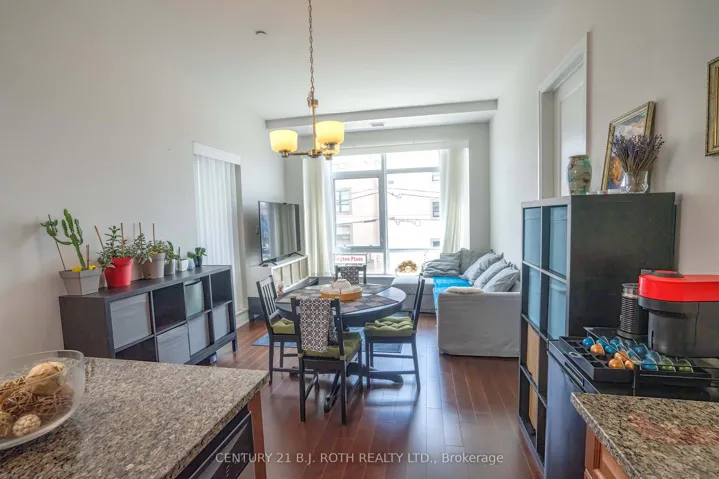 Welcome to The Centro! A luxury boutique condo on Yonge, in the charming Aurora Village. Everything in this 2-Bedroom unit is upscale and grandeur: soaring 10′ ceilings, large windows, oversized doors. Total 843 sq.ft. including 748 sq.ft. interior and a large 95 sq.ft. balcony. The unit is flood with natural light. It comes with a kitchen island, quality appliances, ensuite laundry, a walk-in closet in primary bedroom, and a large double sized closet with built-In organizers in the 2nd bedroom. The property features a spacious open concept Living-Dining area, with oversized windows and a walk-out to a patio-balcony with South views, equipped with gas outlet for your bbq. The high-quality new LG washer and dryer were installed in 2023. The hardwood floors have been sanded and re-finished with a beautiful colour in September 2024. Great Amenities: Concierge, Exercise Room, Party/Meeting Room, Bbq Allowed, Plenty of Visitor Parking Spaces. Prime location right in the heart of Aurora with easy access to shopping, dining, and transit. Walking distance to new Aurora Town Square and Library, a short drive to Aurora Community Centre. Quick access to Go Train, Hwy 404.