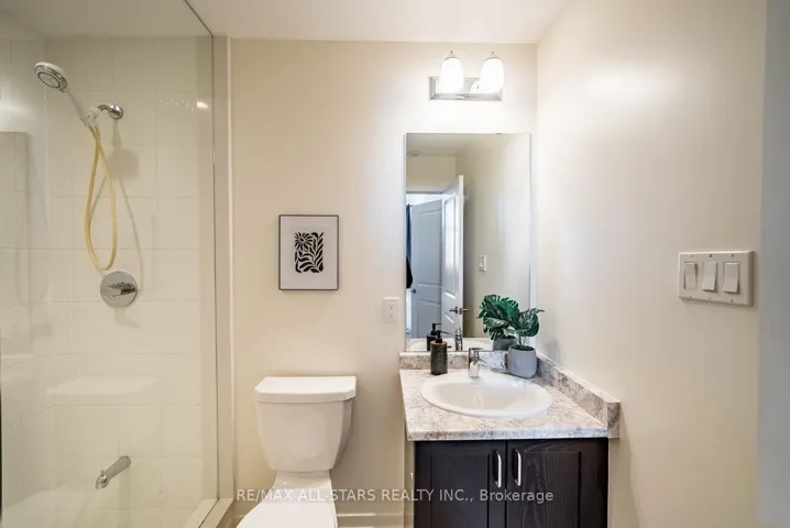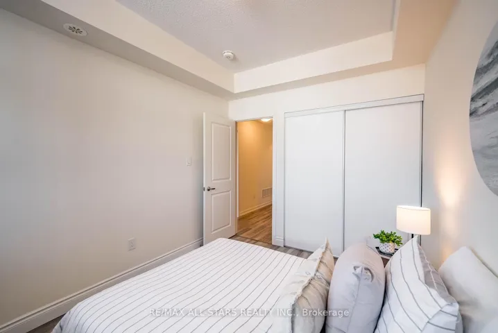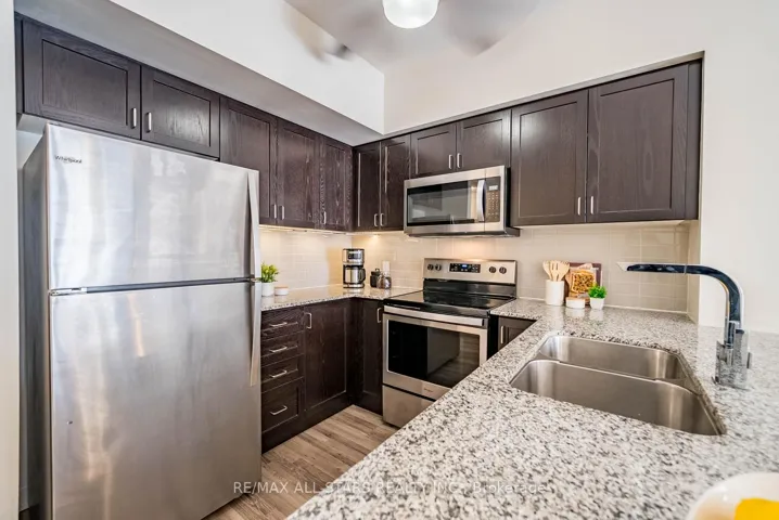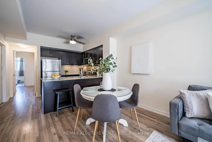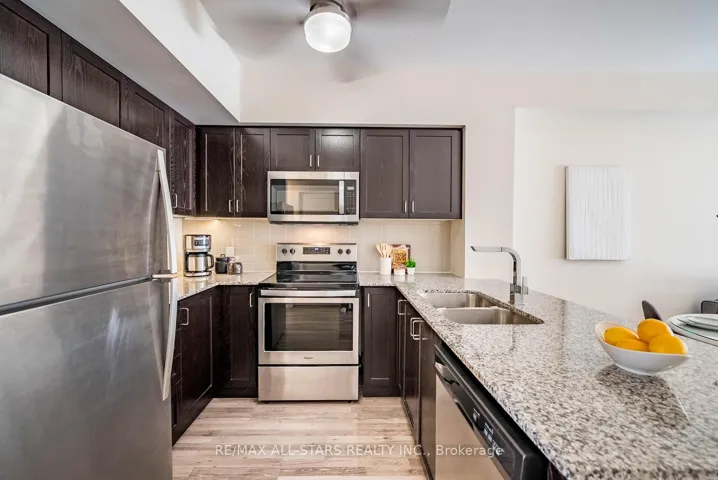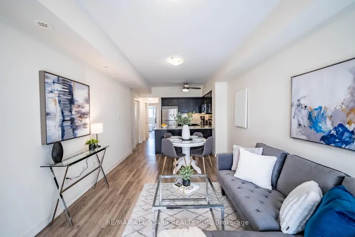 Set within the sought-after Vista Flats & Towns by Geranium in the award-winning Cardinal Point community, this sun-filled main-floor suite offers a highly functional layout with 2 bedrooms and 2 full bathrooms, along with the added convenience of two parking spaces and one locker. Designed for comfortable everyday living, the open-concept interior features 9-foot ceilings, laminate flooring, and large windows that bring in an abundance of natural light thanks to its south-facing exposure. The kitchen is finished with stone countertops, stainless steel appliances, and a breakfast bar that seamlessly connects to the living and dining areas.The primary bedroom includes a walk-in closet and its own 3 piece ensuite, while the second bedroom can easily adapt to suit your needs-whether for guests, a home office, or a growing family. With easy access to both the unit and building amenities, plus minimal steps, this layout is especially practical for a wide range of buyers.Enjoy your own private balcony overlooking a quiet, landscaped courtyard, offering a peaceful outdoor retreat. Surrounded by scenic trails, mature trees, and a nearby pond, the neighbourhood blends nature with convenience, all just minutes from Main Street shops, restaurants, schools, and daily essentials. Commuters will appreciate the close proximity to GO transit along with quick connections to Highways 48, 404, and 407.A meticulously maintained, move-in ready opportunity offering a simplified lifestyle in a welcoming, established community.
