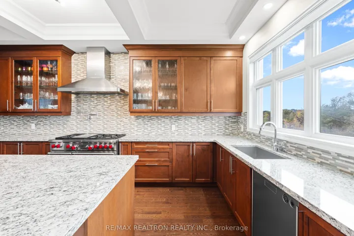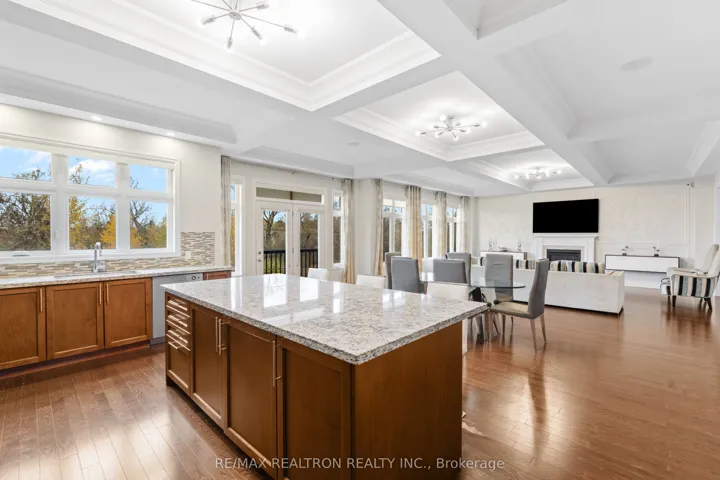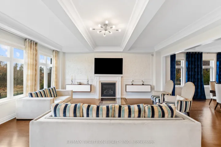 Welcome to 56 Ria Court – Ultimate Ravine Retreat in the Prestigious Castles of King!Tucked away on a quiet, exclusive court, this spectacular estate sits on one of the largest ravine lots in the community – over 12,400 sq. ft. Lot of Resort-style privacy with a massive backyard that widens to 120 ft across the rear. A true showpiece offering 6,900+ sq. ft. of refined living space (including a full walk-out lower level), this residence combines timeless elegance with modern luxury.Step inside to soaring 10′, 11′ & 14′ ceilings, a grand open layout, and exquisite craftsmanship throughout. The main level features a designer chef’s kitchen with walk-in pantry, servery, and ravine views; an oversized dining area perfect for entertaining; and a stunning family room with gas fireplace and custom detailing. The elegant living room with 14′ ceilings creates an unforgettable first impression.Upstairs, you’ll find four private ensuite bedrooms, each thoughtfully designed, plus a serene primary suite with dual walk-in closets, his & hers spa-inspired baths, tray ceiling, and fireplace.The walk-out lower level feels like its own private retreat, complete with a full kitchen, guest bedroom, 3-piece bath, and direct access to the future pool-sized backyard oasis.Additional highlights include a main floor office with coffered ceiling, custom mudroom, second-floor laundry, and a 3-car tandem garage. No sidewalk, premium curb appeal, and an unbeatable location just minutes to top schools, boutique shopping, highways, and all modern amenities.A rare opportunity to own one of King City’s most coveted court-lot estates – where everyday living feels like a private resort.
