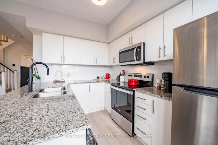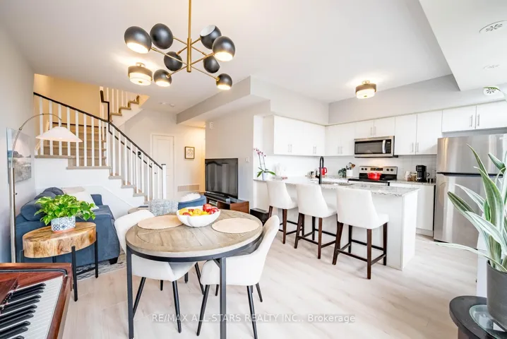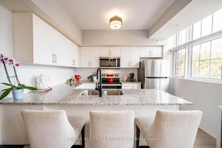 Beautifully upgraded Brighton model located in the award-winning Cardinal Point community at Geranium Vista Flats & Towns in Stouffville. This bright and modern 2-bedroom, 2-bathroom condo townhouse offers just under 1,200 sq ft of stylish, move-in ready living space. Features include 9 ft ceilings, floor-to-ceiling windows on both levels, laminate flooring, upgraded lighting, and views overlooking protected green space. The open-concept main living area includes a contemporary kitchen with quartz countertops, tile backsplash, white cabinetry, and breakfast bar, flowing into the living & dining space with walk-out to a private balcony-perfect for relaxing or entertaining. Upstairs you’ll find two spacious bedrooms, convenient laundry closet, and a 5-piece bathroom. The primary bedroom features floor-to-ceiling windows, a walk-in closet, and beautiful green space views, while the second bedroom offers a double closet and the same incredible views. Enjoy an incredible rooftop terrace, providing a private outdoor space to entertain and take in the views without the maintenance of a backyard. One owned parking space and locker included, and high-speed internet is included in the maintenance fees. Ideally located just minutes from Stouffville’s growing Main Street, restaurants, cafés, Longo’s, Starbucks, shops, and everyday amenities. Convenient access to GO Transit and Highways 404 & 407 for an easy commute to Toronto. Don’t miss out on this one!