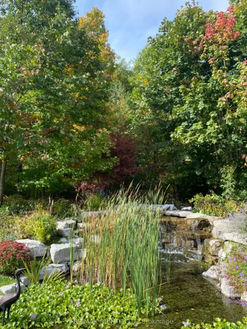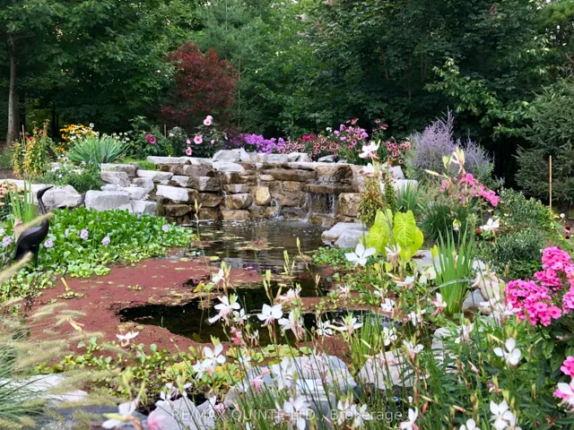 Nestled within the prestigious Ballantrae Woods community, this stunning 3,340 sq. ft. custom-built stone home with 4 bedrooms and 5 bathrooms, commands 1.356 private acres of breathtaking park-like grounds. Two beautifully landscaped ponds surrounded by exceptional perennial gardens, mature woodland, and extensive stone walkways and patios; all wrapped in elegant wrought iron fencing, create an outdoor sanctuary that must be seen to be believed. Meticulously maintained, the landscaping alone sets this property apart. Separate fenced areas for kids and pets, plus a well-built play structure, make this backyard as functional as it is breathtaking.Inside, you are welcomed with an elegant foyer, boasting 18′ ceilings, marble floors and spectacular chandelier. A gracious upper gallery hall flows between the sleeping quarters, flanked by wrought iron railings that frame sweeping views of the soaring 18-foot ceilings in the foyer and family room below; a dramatic architectural statement that commands attention from the moment you enter the home and create an impressive sense of grandeur. The chef’s kitchen features granite countertops, a centre island, chef’s desk, pantry cupboards, and limestone floors, flowing seamlessly into a large 3-season sunroom with cathedral ceiling and two walkouts to the stone patios. A coffered ceiling in the grand dining room, main floor office, laundry, and direct access to the 3-car garage complete the main level.The primary bedroom offers a walk-in closet and 5-piece ensuite with jetted soaker tub, glass shower, and marble floors. The finished basement adds a 4-piece bath and an oak and marble fireplace.Key updates and extras include: a brand new roof, Generac whole-home generator, sprinkler system, central air, central vac, owned hot water tank, alarm system, paved driveway, large deck, and play structure. Great country feel – in town. This is Whitchurch-Stouffville living at its finest. (Some photos with vitually enhanced lighting.)