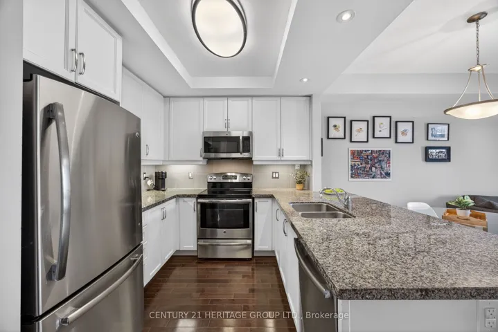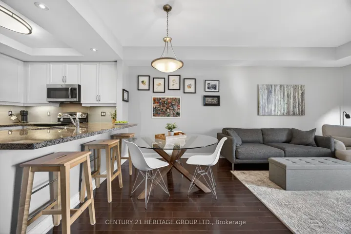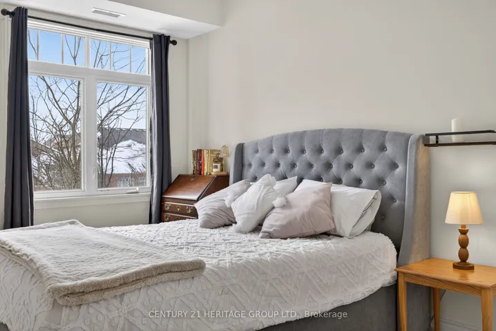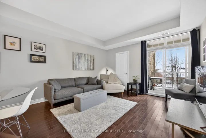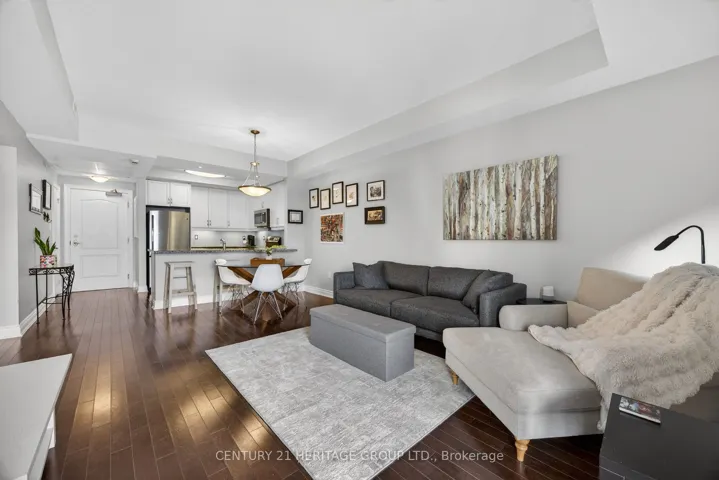 Welcome to this beautifully maintained 1-bedroom, 663 sq ft condo in a low-rise building completed in 2012, ideally located in the sought-after Briar Hill at the Nottawasaga Inn. Known for its peaceful setting and strong sense of community, this is a place where residents genuinely feel safe, comfortable, and at home. This bright, southwest-facing unit features 9-foot ceilings and an open-concept layout that connects the kitchen, dining, and living areas. Hardwood floors run through the foyer, kitchen, and living room. The living area offers a walk-out to a covered balcony, perfect for enjoying afternoon sun and evening light. The welcoming foyer includes a closet with built-in shelving. The kitchen is well-appointed with quartz countertops, ceramic tile backsplash, breakfast bar, undermount sink, under-cabinet lighting, and GE stainless steel appliances, including a built-in dishwasher. The spacious 4-piece bathroom includes a linen closet and a newer stacked GE washer and dryer (2023). The bedroom features carpeted flooring, a large southwest-facing window, and a walk-in closet. A major highlight is the inclusion of two parking spaces – a rare and valuable feature – along with a separate storage locker. The building also offers the convenience of an elevator. Residents enjoy access to the vibrant Briar Hill Community Centre, offering social activities, clubs, games, and events, while the nearby Nottawasaga Inn Resort & Conference Centre provides golf, fitness facilities, dining, and year-round recreation. A low-maintenance lifestyle in a welcoming, secure community – ideal for first-time buyers or downsizers. Maintenance fees: $911.65