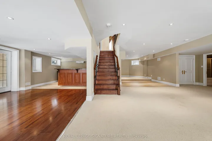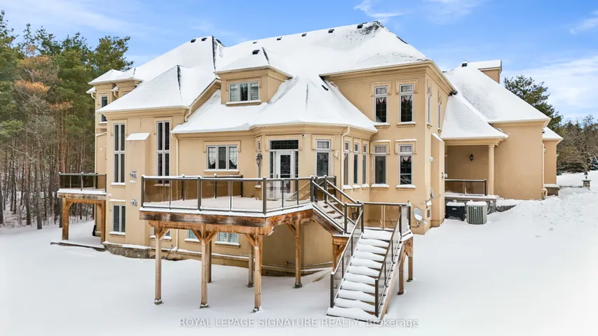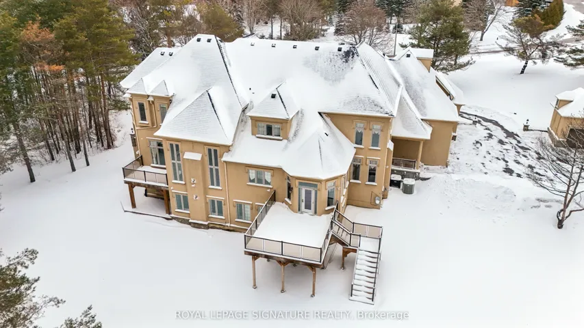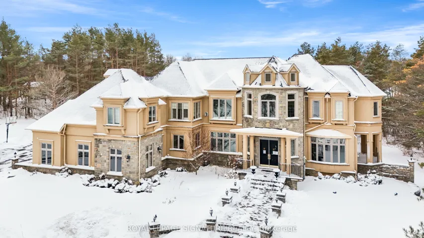 Welcome to this rare offering combining over 8500 sq ft of total living space, thoughtful design, and a prestigious setting in an exclusive enclave. Nestled on a quiet private cul-de-sac and surrounded by prestigious multi-million-dollar estates, this exceptional residence sits on a sprawling two-acre lot offering privacy, space, and refined living. A grand main floor welcomes you with soaring ceilings and elegant tile flooring throughout, creating a bright and open atmosphere ideal for both everyday living and entertaining. A thoughtfully tucked-away office with warm natural wood accents provides ample work-from-home space, while the bright formal dining room showcases crown moulding and timeless charm. Chef’s kitchen featuring stone countertops, a stone centre island, and a breakfast area with walkout to the deck-perfect for seamless indoor-outdoor living. Multiple gas fireplaces add warmth and character throughout the home. The upper level features four spacious bedrooms, each with its own private ensuite. The expansive primary retreat offers a luxurious five-piece spa-like ensuite and plenty of room to relax. The above-grade lower level provides exceptional versatility with two additional bedrooms, a kitchen, comfortable sitting area, and flexible space ideal for a gym, recreation area, or playroom. Multiple walkouts lead directly to the expansive backyard, creating endless opportunities for outdoor enjoyment. Walk to Hanson’s Chinese + Pizza, Whitchurch Conservation Area, and a quick drive to Highway 404, golf courses, Longo’s, Farm Boy, Walmart, Pharmacies and more.