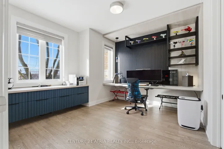 Located on a quiet cul-de-sac in the highly sought-after Berczy community – where your view is lush greenery, not a neighbour’s driveway – this meticulously cared-for 2021-built 4+1 bed, 5 bath with a total of 3400 Sq feet of living space, home feels as spacious and peaceful as it is conveniently located. Rare in a community this desirable. Sitting on a 39 x 103 ft lot, the home features 9-ft ceilings across all three levels, 8-ft doors throughout, and hardwood flooring – details that set the tone before you even get to the upgrades.Over $250K invested where it counts: extended cabinetry, custom office, upgraded Thermador appliances, water softener, humidifier, and dehumidifier. The 200-amp electrical panel and smart, side-mounted garage opener with deadbolt and high-lift conversion reflect the same thoughtfulness carried through every corner of this home.The finished basement with separate entrance adds a bedroom, bathroom, proper insulation, dedicated mini-split heating/cooling, and ESA inspection – ready for in-laws or extended family. Outside, full interlocking accommodates up to 6 vehicles, with a professionally finished garage featuring epoxy floors, 60-amp EV charger, and car lift. Security camera system with no monthly fees. POTL $215/month covers water, garbage, and snow removal. Top-ranked schools, parks, and amenities minutes away.