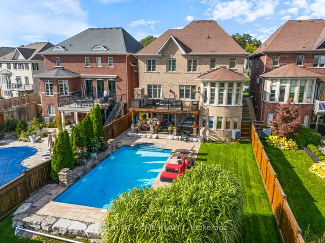 A MUST SEE! Resort-style living in South Aurora’s prestigious Grand Chateaus. Built by Genview Homes, this exclusive and highly sought-after community is known for its quality-built homes, elegant streetscape, and proximity to top private schools. Set on a premium south-facing lot, the home offers abundant natural light and a beautifully landscaped backyard featuring a saltwater in-ground pool, natural flagstone, fire features, and multiple seating areas, creating a peaceful and private outdoor environment. The main level offers a spacious and well-balanced layout with formal living and dining rooms, leading to an open-concept kitchen and large dining area overlooking the backyard. The family room features custom built-ins and a fireplace, creating a warm and inviting gathering space. A custom-designed deck extends the living space outdoors, complete with a built-in BBQ, stone fireplace wall, and dedicated dining area- perfect for hosting and everyday enjoyment. Upstairs offers a luxurious primary suite with spa-inspired ensuite, a custom home office with built-in cabinetry, and 2 additional bedrooms. The fully finished walkout basement provides excellent additional living space, including a family room with fireplace, bar, games area, fitness space, bedroom, and bath. Direct access leads to a covered outdoor lounge with hot tub and easy access to the backyard and pool, well-suited for extended family or guests. Additional features include a rare tandem three-car garage, 8-foot solid core doors throughout, interlock driveway and landscaped walkway, integrated security and speaker systems, and meticulous upkeep throughout. Located minutes from St. Andrew’s College, St. Anne’s School, Magna Golf Club, parks, and premium amenities. A refined home offering comfort, quality, and an exceptional lifestyle in one of Aurora’s most desirable communities. New Bullfrog 7 hot tub with lights and waterfall just installed! Relax away!