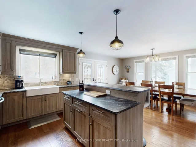 Welcome to 23285 Lakeridge Road, a beautifully appointed 3+2 bedroom raised bungalow with approximately 3,000sqft of finished living space! This home features a charming wrap-around front porch, set on a spacious lot backing onto forest for an exceptional sense of privacy, comfort, and style. Thoughtfully designed, this inviting home features smooth ceilings, engineered hardwood flooring throughout the main level, large picture windows that fill the interior with natural light, and a bright open-concept layout ideal for both everyday living and entertaining. Generously sized principal rooms offer excellent functionality, while the primary suite is enhanced by a large walk-in closet and a spa-inspired 3-piece ensuite. The kitchen is both elegant and practical, showcasing granite countertops, a farmhouse sink, breakfast bar seating, and an abundance of tall cabinetry, with a walk-out to the rear deck for seamless access to the fully fenced backyard, an ideal setting to enjoy your morning coffee or unwind at the end of the day. The finished lower level is bright and welcoming, complete with oversized above-grade windows, vinyl flooring, a spacious open-concept recreation room, an additional living area, two extra rooms, a dry bar, and a rough-in for a 3-piece bathroom, offering outstanding flexibility for extended family living, guest accommodations, or a future in-law suite. Set well back from the road with a long driveway and ample parking, this property offers a peaceful country setting while remaining close to everyday conveniences. Ideally located on the border of Brock and Georgina Township, where you can enjoy the convenient access to amenities in both communities, including schools, parks, libraries, community centres, beaches, marinas, boat launches, and a wide range of year-round recreational opportunities. A perfect blend of lifestyle, comfort, and convenience.