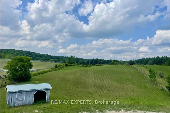 Highly Desirable and Sought After 10 Acre Country Residence Situated on The High Point of The Sixteenth Sideroad Just North of Nobleton Lakes Golf Course Between The 8th Concession and Hwy 27.The Board and Batton Bungalow Has Been Upgraded and Redecorated Resulting In A Home Worthy Of A Feature in Modern Farmhouse Magazine. The Log Walls Have Been Painted In a Soft White Complimented With 7 1/2″ White Oak Hardwood Flooring, Black Hardware and Cathedral Ceilings In Every Room Featuring Natural Oak Beams and Views From Every Room to Scenic Rolling Pastures or Private Gardens. The Property Is Ideal For Horse Lovers Having a 5 Stall Horse Barn Workshop and Tack Room, Run-In Shed and Fenced Paddocks. The Property Would Also Lend Itself Ideal For A Doggy Daycare. The Detached Double Car Garage With 430 Sq. Ft. Bachelor Apartment Above Overlooks The Pool and Picturesque Rolling Pasture. An Inground Concrete 40 x 20 Ft Heated Pool Is Complete With Concrete Patio Surround Complimented With A Covered Gazebo and Adjacent Built-in Pool Cabana Featuring Double French Doors, A Roll-Up Servery Door, Wet Bar, Vaulted Ceiling and 2 Piece Washroom.