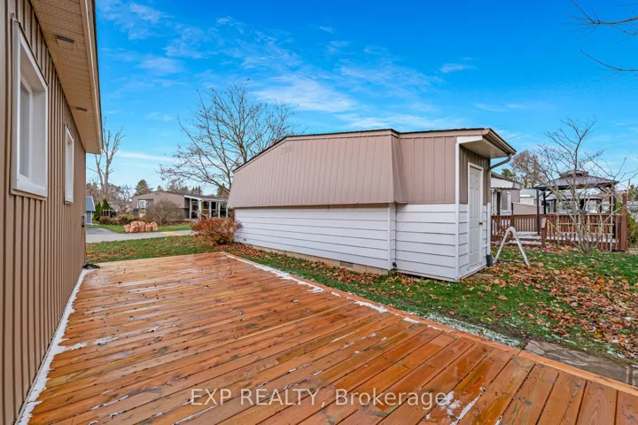 Welcome to this beautifully renovated 2 bedroom, 2 bathroom bungalow located in a sought after 55+ adult land lease community. Offering modern comfort and style, this home has been completely updated with all-new kitchen appliances and a bright, open-concept layout. The spacious family room flows seamlessly into the sun-filled solarium, with large windows and provide a walkout to a private deck perfect for relaxing or entertaining. The primary suite features a walk-in closet and a 3 piece ensuite, while the second bedroom and full bath provide space for guests or a home office. Enjoy easy, maintenance free living in a welcoming community designed for your lifestyle.Land Lease Fees are as follows: Rent: $855.00 Site Tax: $187.51 Total: $1042.51. Don’t miss the chance to move into a turnkey bungalow that combines modern upgrades with community living at its best.