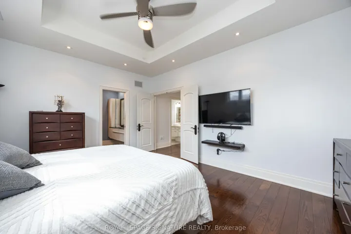 Step into 35 Rainbow Drive, a beautifully updated home where modern comfort meets thoughtful design. Expanded with a second-storey addition 12 years ago, the main floor boasts soaring 8.5-foot ceilings, while the upper level features 9-foot ceilings, filling every room with light and openness. Rich hardwood floors and fresh professional paint create a warm, move-in-ready atmosphere throughout. The main floor offers a cozy, open-concept layout with a functional design, perfect for everyday living and entertaining, complemented by a separate walk-in pantry for added storage. The primary suite is a sun-filled retreat with an elegant tray ceiling, spa-inspired ensuite featuring floating vanities, and a spacious walk-in closet that blends style with function. Every detail has been carefully considered, including 7.5-inch baseboards, built-in surround sound, and fully owned, updated systems: furnace, tankless hot water, humidifier, water softener, and updated plumbing, and electrical, providing comfort and peace of mind. Step outside to a spacious backyard designed for entertaining and relaxation. Relax in the saltwater hot tub beneath a custom louvered pergola crafted from 100-year-old reclaimed barn wood, complete with a skylight that fills the space with natural light. Entertain on the low-maintenance PVC deck, gather around the cozy gas fire pit, or enjoy the built-in outdoor kitchenette with Napoleon gas BBQ, fridge, and granite countertops. Located just steps from public transit and minutes from the Humber River Trail, Market Lane, schools, shopping, and highways, 35 Rainbow Drive blends lifestyle, convenience, and thoughtful upgrades. Lovingly maintained and move-in ready, this home offers the perfect setting for comfortable living and memorable gatherings.