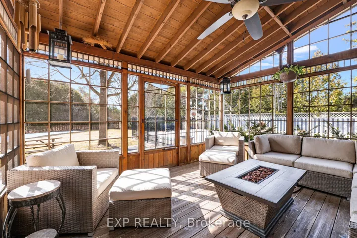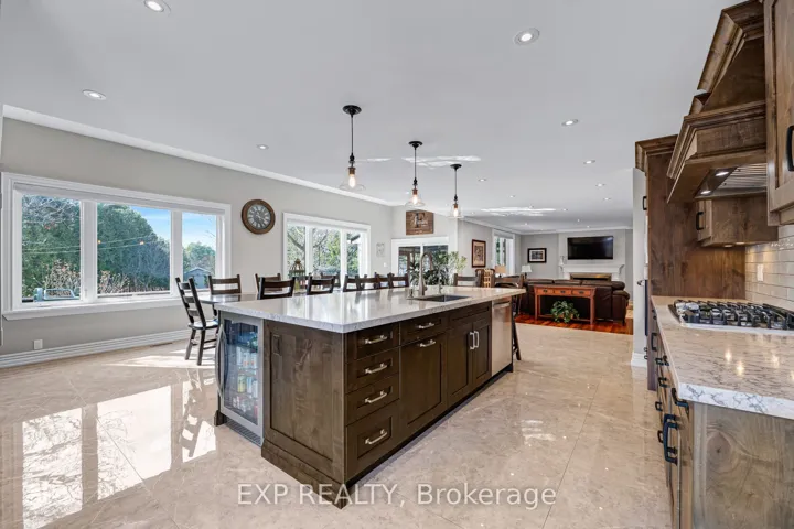 This exceptionally maintained and tastefully renovated home is perfectly suited for a growing or multi-generational family. Thoughtfully designed with both comfort and entertaining in mind, the expansive chef’s kitchen showcases custom cabinetry, integrated, high end appliances, and an oversized island, seamlessly opening to a warm and inviting family room centered around a cozy fireplace-ideal for both everyday living and grand gatherings.The stunning three-season Muskoka room offers serene views of the resort-style backyard, complete with a saltwater swimming pool and waterfall. A large stone patio with a built-in pizza oven enhances the outdoor experience, creating the perfect setting for entertaining or relaxing in your private retreat.The main floor also features a formal dining room and a private office, ideal for working from home or use as another bedroom. Upstairs, you’ll find three generously sized bedrooms along with the convenience of second-floor laundry.The fully finished lower level includes a spacious in-law suite with a walkout to the beautifully landscaped grounds, offering flexibility and comfort for extended family or guests.Completing this exceptional property is ample parking for up to six vehicles, along with a rare three-car tandem garage-perfect for car enthusiasts, hobbyists, or additional storage-enhanced by the added convenience of a built-in air compressor system and backup generator for peace of mind. Enjoy the tranquility of country-style living just minutes from all the amenities of Aurora and Newmarket.