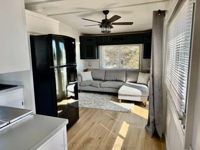 Welcome to affordable living! Cute and cozy 1+1 Bedroom, situated in popular Lyndhurst golf and park! Approximately 10 minutes from Lake Simcoe, and just under 15 minutes to the highway 404 extension! Backing onto Green space, enjoy this lot with no neighbours behind. Open concept home, one bedroom with a den! Updates include roof (re tarred) hot water tank owned, vinyl siding, vapor barrier and insulated al approximately 2023. Enjoy walking trails, an inground pool, and just steps from a beautiful 18 hole golf course! This home is located on leased land. The lease from April 26th to October 26th is $3575.00 plus HST.