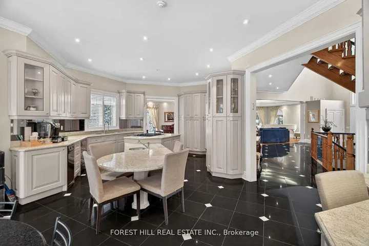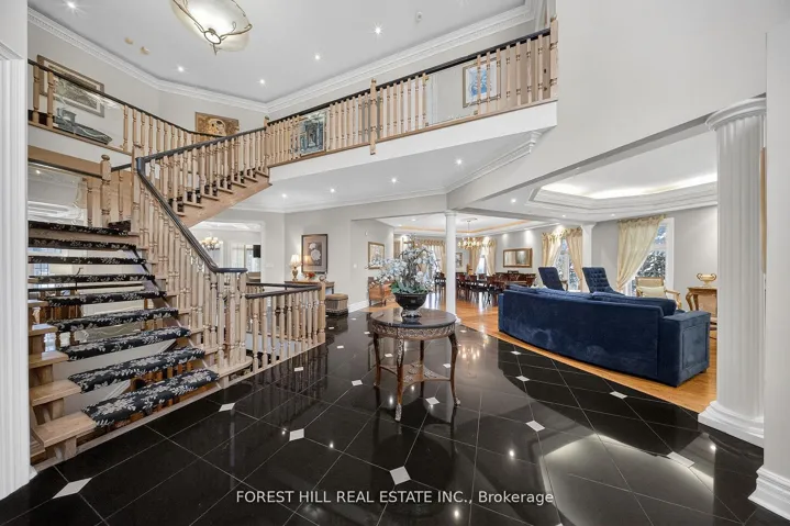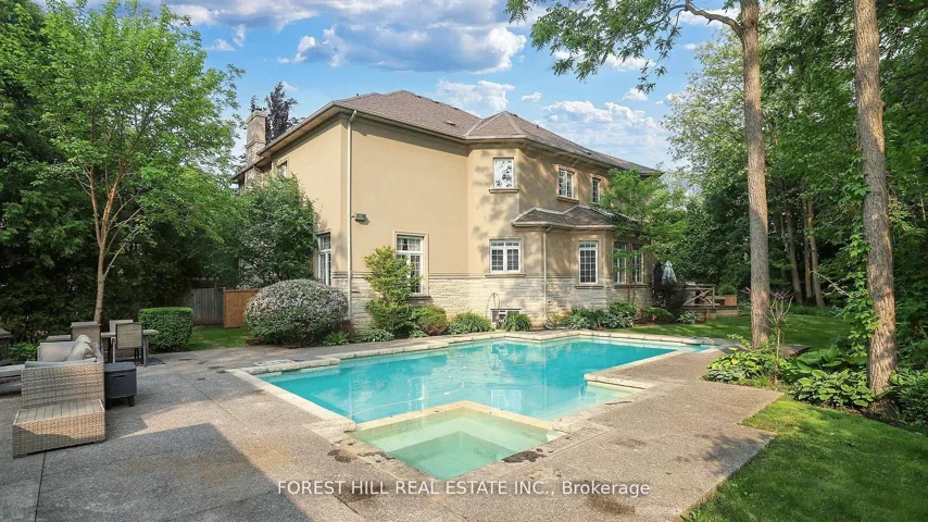 Welcome to 161 Renaissance Court, an exceptional and truly rare offering on a quiet, private cul-de-sac recognized as one of the most prestigious streets in Thornhill and the entire GTA. Custom-built to the highest standards of craftsmanship, this grand residence sits on one of the largest irregular, pie-shaped, fully treed lots in all of Thornhill, boasting over 228 feet of width at the rear and offering remarkable privacy and scale. With approximately 10,000 sq. ft. of living space (6,650 sq. ft. above grade plus a 3,141 sq. ft. finished basement), the home features 5 spacious bedrooms and 7 bathrooms, soaring 10-foot ceilings on the main level, a dramatic cathedral foyer with picture window glass entry, and two main-floor washrooms. Designed for both luxury and functionality, the expansive layout includes a potential main-floor in-law suite, a second service staircase, open-concept principal rooms, and quality finishes throughout, including 8-foot solid doors, granite floors, and a massive chef’s kitchen with an oversized island. The sun-filled southwest-facing backyard is a true private retreat, highlighted by a spectacular in-ground swimming pool, spill-over hot tub and spacious Cabana/change room, surrounded by mature trees-perfect for entertaining and family living. Completing the home are a three-car garage, circular interlocked driveway, and an unbeatable location ideal for large families looking to raise their children in Thornhill’s most sought-after community, just a short walk to Westmount Collegiate Institute, Chabad Flamingo, and close to top-ranked French Immersion and Arts programs, offering an unmatched combination of space, privacy, luxury, and lifestyle.