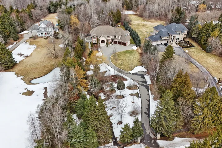 A Rare Custom Masterpiece Of Countryside Luxury Set On Nearly 5 Acres Of Serene Wooded Grounds With A Tranquil Stream! Discover this extraordinary private estate in prestigious Kettleby, just minutes from King City and Hwy 400. Step through a dramatic soaring atrium into this thoughtfully designed home, featuring expansive windows, refined architectural detailing, and rich 7″ oak plank hardwood flooring throughout. The chef-inspired kitchen showcases granite countertops, coffered ceilings, an oversized centre island, and professional-grade built-in appliances. Offering approx. 6,300 sqft above grade plus a fully finished walk-out lower level, the home features 5+1 bedrooms and 9 bathrooms. A private second-floor suite with its own kitchen and ensuite is ideal for extended family or guests. The walk-out lower level is an entertainer’s dream, complete with a custom home theatre with VIP seating, a gym, wet and steam saunas, and expansive recreation space. Outdoors, enjoy resort-style living with an inground saltwater pool, new liner and heat pump (2025), domed hot tub, and beautifully landscaped grounds with irrigation. Modern systems include geothermal heating, well water, septic system, and owned mechanicals including furnaces, hot water heater, and water filtration system. Heated 4-car garage and gated entrance (as is) complete this exceptional offering. Don’t miss out on this opportunity!