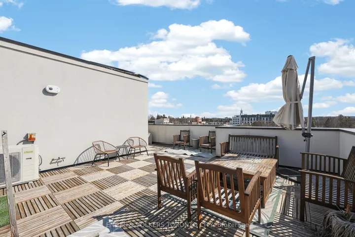 Stylish stacked townhome offering the perfect blend of space, functionality, and outdoor living. Featuring approximately 1,560 sq ft of interior space, this well-designed layout includes three generously sized bedrooms and an open-concept living area ideal for everyday living and entertaining. The standout feature is the expansive rooftop terrace (approx. 400 sq ft), providing a private outdoor retreat with beautiful corner views-perfect for hosting or relaxing. Conveniently located just steps to the GO Train, Yonge Street, and Wellington, with easy access to shops, dining, and transit. A great opportunity for those seeking low-maintenance living without compromising on space or lifestyle.