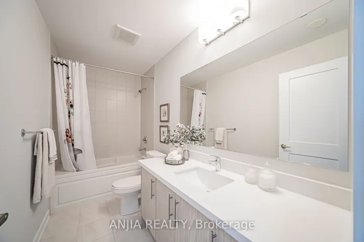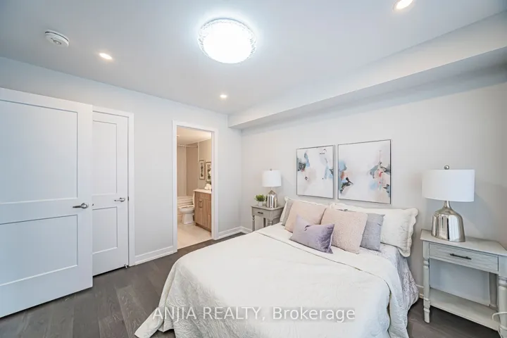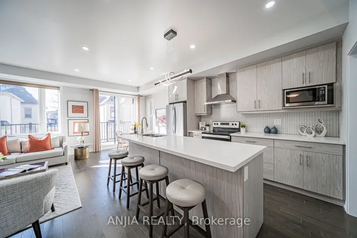 Experience upscale suburban living in this beautiful 4-bedroom, 4-bathroom 100% freehold (no Potl fee) corner townhouse, located in the prestigious Angus Glen neighbourhood of Markham. This prime location offers a blend of luxury living and natural beauty, with the renowned Angus Glen Golf Club just minutes away. The property features a stunning 668 S.F. rooftop terrace, perfect for relaxing or entertaining. The spacious primary bedroom includes a 4-piece ensuite bathroom and a large walk-in closet, an upgraded ground-floor bedroom with a 3-piece ensuite. The open-concept great room and kitchen seamlessly blend style and functionality, featuring granite countertops, pot lights&Morden LED Pendant Lighting over the kitchen island. A 65-inch Samsung OLED Smart TV is mounted on the feature wall, with marble shelving and colour-changing LED Lighting, smooth ceiling, modern cabinetry, stainless steel appliances, and a spacious walk-in pantry. Large windows let in lots of natural light, creating a bright and welcoming atmosphere and providing access to the large terrace. The rooftop terrace and the second and third bedrooms all enjoy views of the park at the back, offering a beautiful and relaxing visual experience.