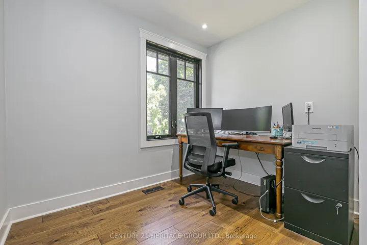 This impressive bungalow offers far more space than meets the eye and must be seen to be fully appreciated. The main level showcases a chefs kitchen featuring a Wolf 6-burner gas range, Sub-Zero full fridge and freezer, an abundance of cabinetry with polished nickel hardware, a walk-in pantry and a large center island with breakfast bar and stylish pendant lighting. The open-concept dining area is perfect for everyday meals or entertaining. The great room is stunning with its soaring 14.5-foot vaulted ceiling, cozy wood-burning fireplace and walkout to the back deck. The primary suite includes a walk-in closet and a spa-like ensuite with double sinks, a glass shower with rain head and handheld and modern finishes. A main floor office offers the ideal work-from-home space. The mudroom/laundry room impresses with built-in closets, a folding counter with storage and direct access to the driveway. A convenient powder room completes this level. Beautiful engineered hardwood flows throughout the main floor. The finished basement expands the living space with a large rec room, open office/den area and four additional bedrooms with large windows, as well as a 3-piece bath and ample storage. Vinyl strip flooring runs through the lower level rooms. Step outside to enjoy the private backyard, surrounded by mature trees and lush gardens. Entertain or unwind on the low-maintenance composite deck, gather around the patio which is the perfect place for a fire bowl or chiminea or relax year-round in the hot tub. Located close to schools, transit, and everyday amenities, this remarkable home combines comfort, style and convenience.