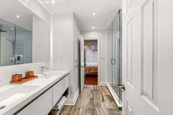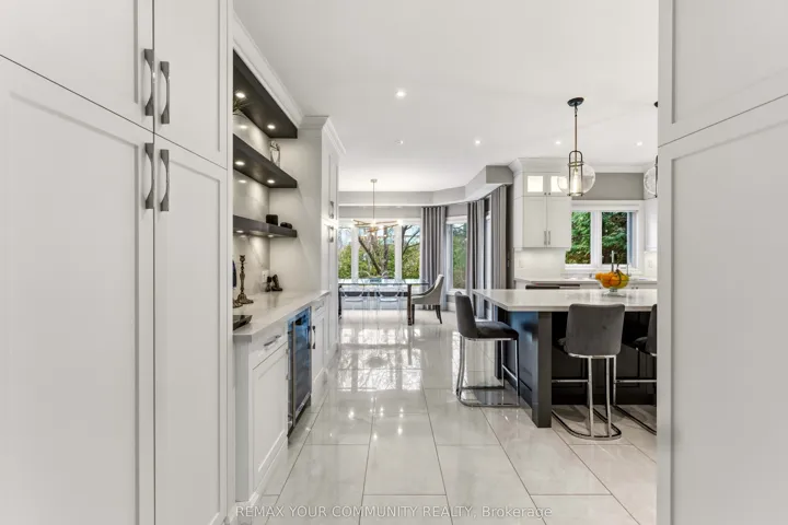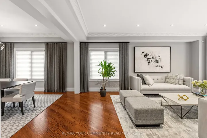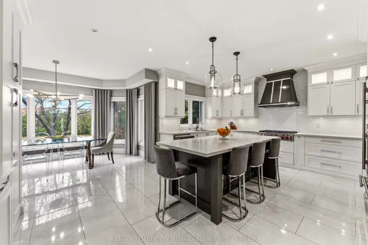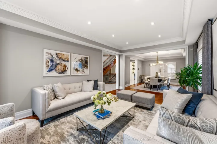 Exquisite, original-owner residence in prestigious Thornhill, set on a rare and beautifully landscaped 50 x 200 ft lot in a quiet, established pocket. Offering approximately 4,350 sq. ft. of refined living space, this fully renovated (2020) 5+2 bedroom, 6-bath home showcases a striking stone fagade, custom interlocking driveway, and exceptional curb appeal. Inside, elegant principal rooms feature hardwood flooring, plaster mouldings, pot lights throughout, custom designer lighting, and a sun-filled living/dining area with bay window. The private office is finished with wainscoting, built-in bookcases, and hardwood floors. The chef-inspired kitchen is equipped with premium Sub-Zero, Wolf, and Miele appliances, including a 6-burner cooktop, warming drawer, custom hood fan, and wine fridge, with a bright breakfast area and walk-out to deck. The fully finished basement with 9-ft ceilings offers a separate entrance, wet bar, wine cooler, sauna, and a private nanny’s suite with 3-piece bath, ideal for extended family or potential in-law living. Additional features include 2 gas fireplaces, skylight with rope lighting, custom electric blinds, central A/C, central vacuum, alarm system, water softener, sprinkler system, and EV charger in the garage. Located minutes to top-rated schools, parks, Promenade Shopping Centre, transit, and major highways, this is a rare opportunity to own a meticulously upgraded home on an exceptional lot in one of Thornhill”s most desirable family neighbourhoods.