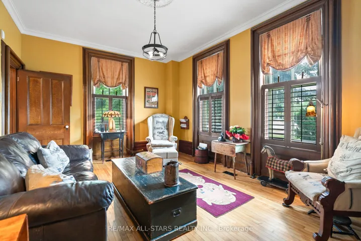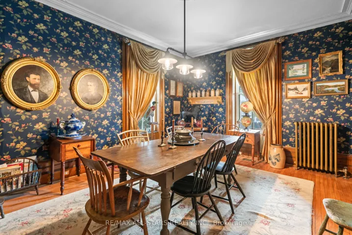 Step into a bygone era with this beautifully preserved 1.5-storey century home, circa 1874, known as the “Robert Mooney Residence,” set on a mature, tree-lined lot in the heart of Uxbridge. Rich in history and timeless appeal, this 3-bedroom, 2-bathroom home offers 2,366 sq.ft. of refined living space for those who value heritage, craftsmanship, and enduring character. From the moment you arrive, the ornate wrought iron fencing, classic proportions, and inviting porch hint at the story within. Inside, original details take centre stage-soaring ceilings, intricate wood trim, crown mouldings, ceiling medallions, and tall windows that fill the home with natural light. The formal living and dining rooms are elegant yet welcoming, perfect for gathering and entertaining in a setting that feels both grand and intimate. The heart of the home is a thoughtfully updated kitchen that blends modern function with classic style, opening to a sunlit breakfast area and a charming 3-season sunroom-ideal for slow mornings and relaxed evenings overlooking the private, treed backyard. Upstairs, the primary suite offers a peaceful retreat with a dormer window, walk-in closet with laundry, and a beautifully appointed ensuite. Additional bedrooms and a clawfoot tub bath continue the home’s tradition of comfort and character. Outdoors, enjoy a serene setting with mature trees, a spacious deck, and covered porch, along with an impressive detached garage (approx. 40′ x 24′, built 2013) featuring a 19′ cathedral ceiling, reclaimed doors, hardware, lighting, stained glass accents, and its own electrical panel-perfect for hobbyists or additional workspace. A rare opportunity to own a piece of Uxbridge history-where craftsmanship, charm, and lifestyle come together.
