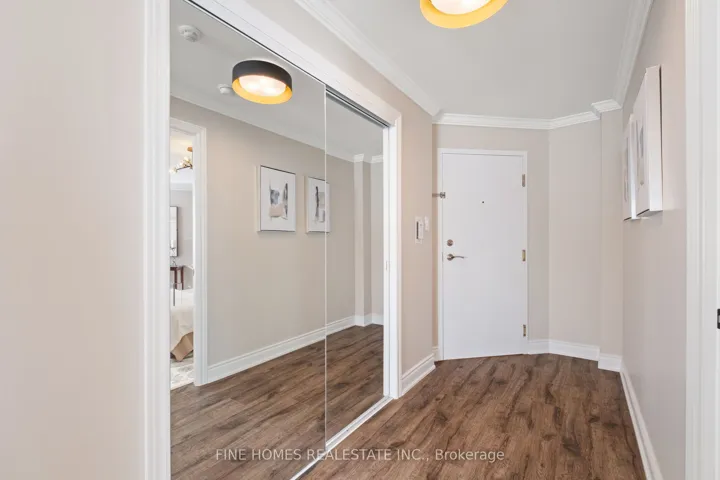 Fully Renovated Luxury Corner Suite! Stunning open-concept layout with a new kitchen featuring quartz countertops, stainless steel appliances, and premium finishes. Both bathrooms beautifully remodelled with sleek, modern design. Enjoy new flooring, LED pot lights, crown molding, and brand-new fan coil units throughout. Spacious primary bedroom with designer touches and custom built-ins. Truly a top-quality renovation-nothing overlooked.Located in a prestigious building with exceptional amenities: 24-hour gatehouse & security, pool, gym, sauna, tennis/squash courts, party & meeting rooms, library, guest suite, and ample visitor parking.Move-in ready and a rare opportunity in an unbeatable location!