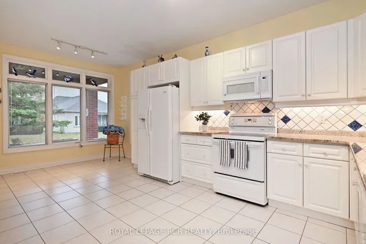 Fabulous rarely offered Pinehurst II model with a bright and beautiful sun-filled kitchen at the back of the house overlooking the private back patio. Granite counter, custom backsplash and under-mount lighting, pantry, and built-in desk add to the functionality of this large eat-in kitchen. The living room boasts a lovely gas fireplace. This open concept 1700 sf layout features 2 bedrooms plus a den and two full bathrooms. This home has been well-maintained by the original owner and freshly painted with neutral decor.. The exclusive Ballantrae Golf and Country Club community boasts a 18 hole championship golf course, recreation centre with indoor salt-water pool, sauna, hot tub, gym, tennis courts, billiards, bocce, and many social activities. Maintenance fee includes: Rogers cable and internet pkg, lawn maintenance, snow removal, irrigation system, and use of rec centre. Gardening package available for a fee.