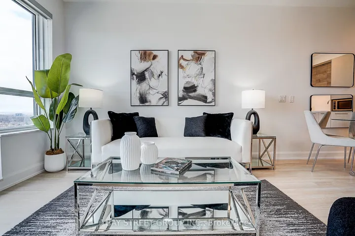 Step into refined urban living at this iconic condominium residence in the vibrant heart of Thornhill. This bright corner suite offers 882 sq ft of well-designed interior space, paired with an impressive 252 sq ft wrap-around balcony. Featuring soaring 9-foot ceilings and stunning panoramic skyline views, the unit blends comfort with contemporary elegance. The thoughtfully planned layout includes 2 spacious bedrooms and 2 full bathrooms. The modern open-concept kitchen is outfitted with quartz countertops, built-in appliances, and premium cabinetry, making it both stylish and functional. Enjoy exceptional convenience with VIVA Transit just steps from the building, along with easy access to Highways 407 and 404. Surrounded by a wide range of restaurants, banks, and shopping plazas, this location truly offers the best of city living. Includes 1 parking and 1 locker.