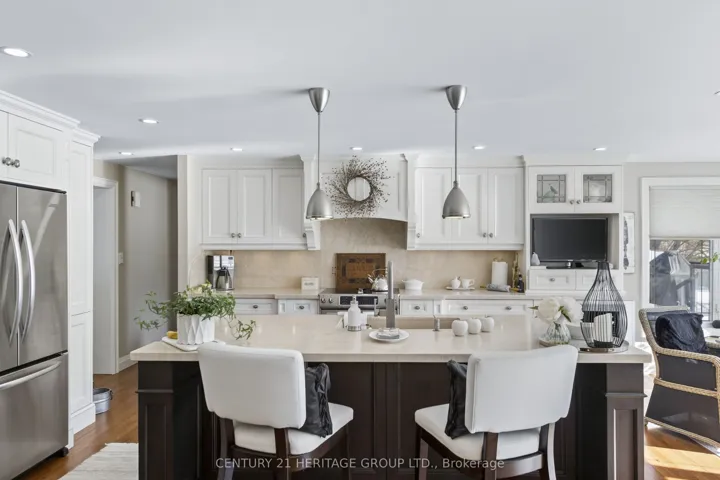 Set on 1.98 private acres, this **turnkey, fully renovated raised bungalow with a rear addition** is designed for effortless living and memorable entertaining. The star of the home is the open-concept great room, featuring a chef’s kitchen with a large island, a dining area for 10, and a sun-filled family room with wall-to-wall south-facing windows overlooking the property. Four bedrooms-two up, two down-and two full baths provide flexibility for family and guests. The finished lower level, complete with a second kitchen, is well suited for an in-law suite, extended stays, or a separate space for teens. Outside, a low-maintenance composite deck connects the home to a resort-worthy pool area featuring a heated inground saltwater pool with waterfall, pool house, and wrought-iron fencing-perfect for summer entertaining. The 40′ x 33′ insulated workshop with running water and two oversized 14′ doors offers exceptional versatility-ideal for hosting unforgettable gatherings, a pottery or art studio, home-based business, fitness space, or a dream garage. Metal roofs on all buildings, composite siding on the home, and major updates-including septic and weeping tiles (2011)-provide lasting peace of mind. A wood-burning stove and heated floors in the mudroom and basement bath add comfort throughout the seasons. Impeccably maintained and completely turnkey, this is a home where pride of ownership is evident at every turn-just unpack and enjoy your summer.