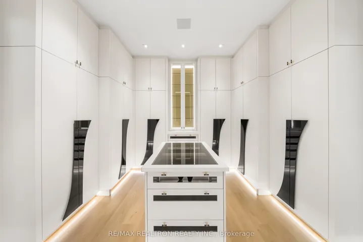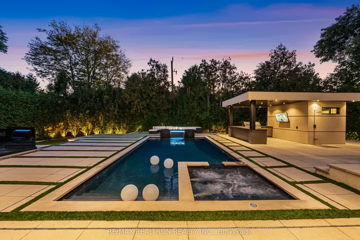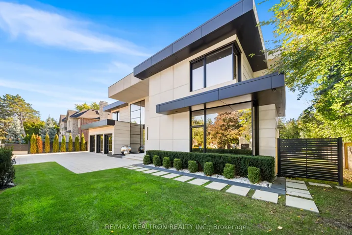 Gated Modern Masterpiece in Prestigious Bayview Glen. A striking showpiece in the exclusive Bayview Glen community, this estate is defined by bold design and uncompromising luxury. The exterior pairs Indiana limestone slabs with ACM panels, European aluminum tilt & slide windows, and a lifetime metal roof. Remote-access security gates and an 11-foot European pivot door create a dramatic first impression. Inside, soaring 24-foot ceilings define the family room, anchored by a marble fireplace and framed by floor-to-ceiling windows with integrated speakers. A floating glass staircase and elevator connect all three levels. Comfort is unmatched with heated main and lower levels, plus heated garages, driveway, steps, walkways, and pathways leading to the cabana. The chefs kitchen offers custom cabinetry, Thermador appliances, a Gaggenau wine cooler, and a waterfall island with leathered marble countertop, complemented by a full prep kitchen. The formal dining room is highlighted by an illuminated onyx wall and designer chandelier, while the living room boasts a backlit onyx fireplace as a dramatic focal point. The primary suite is a private sanctuary with boutique walk-in closet, balcony, fireplace, and spa-inspired ensuite with steam shower. In total, the home offers 5+1 bedrooms and 10 bathrooms. The entertainers lower level features a 26-foot bar with Mario Romano backsplash, 7.2 Dolby Atmos theatre with 150 screen and skylight, wine cellar, nanny suite, fitness room with steam sauna, and a spacious lounge with 100 fireplace and walk-up to yard. Outdoors, southwest exposure frames a resort setting: a Todd saltwater pool, Jacuzzi with independent controls, cascading waterfall with gas fireplace and heated pathways. The cabana doubles as an outdoor kitchen with barbecue, fridge, cabinetry, outdoor TV, shower, 2-piece bath, and built-in speakers. An LA-inspired showpiece in Bayview Glen, blending contemporary design with world-class finishes.