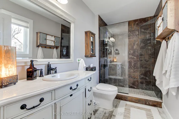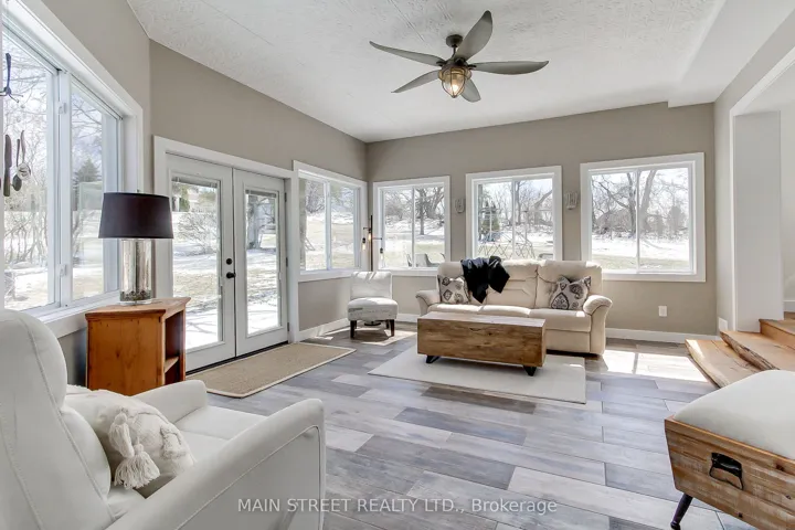 Welcome Home To This Immaculate Two-Family Home! Beautiful Bungalow Situated On Over 1/2 Acre Backing Onto Farm Fields & Adjacent to Vacant Twnshp Lot Provides Tons of Room To Live/Play/Enjoy! Circular Paved Driveway With Parking For 9 Vehicles (+ Double Car Garage); 14 ft X 15 ft Front Deck; Professionally Landscaped With Armour Stone; Come Inside To Hardwood & Tile Throughout; 3 Bdrms on Main Floor; Master With W/I Closet & 4 Pc Ensuite; Large Updated Kitchen With Quartz Counters & Centre Island, Large Sunken Living Room With Fireplace Opens Up To A Bright 4-Season Sunroom/Family Room; Main Floor Laundry; 2 Walk Outs To Yard & 14′ X 19′ Composite Deck With Calming & Private Views; Downstairs Is A 4-yr-old/2 Bedroom Apartment With Full Eat-In Kitchen With Quartz Counters, Family Room, Separate Laundry & 4 Pc W/Room; Separate Entrance Allows For $$$$ Rental Income; Or Bring Your Extended Family To Join You; Electrical Panel 2021, Furnace & Heat Pump 2021; Survey Attached; This Home Shows True Pride Of Ownership Exuding Warmth & Beauty; A Must See To Appreciate!