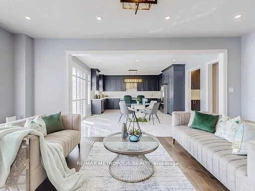 Experience luxury living in Anchor Woods-one of the most prestigious enclaves in Holland Landing. This exceptionally designed, just 3-year-old dream home offers approximately 3,727 sq. ft. of total living space, perfectly blending modern comfort with timeless architectural elegance in a peaceful, family-friendly neighbourhood. Step inside to soaring ceilings, grand entryways, and an expansive open-concept layout illuminated by oversized windows, creating a bright, sun-filled atmosphere throughout. The main floor features a private office with raised ceilings, ideal for working from home in style. At the heart of the home is a stunning gourmet chef’s kitchen-complete with quartz countertops, a massive island, two-tier cabinetry, an extended servery, walk-in pantry, stainless steel appliances, and a sleek hood fan-designed to impress and built for entertaining. Luxury upgrades are showcased throughout, including hardmaple flooring on both levels, elegant iron pickets, designer-selected paint finishes, premium light fixtures, and pot lights across the entire home. Retreat to the spacious primary suite featuring dual walk-in closets and a spa-inspired 5-piece ensuite with a free standing tub and glass-enclosed shower. Enjoy the added convenience of a second-floor laundry room and the comfort of a fully fenced private backyard. Additional highlights include a central vacuum system, high-efficiency A/C, water softener, rental hot water tank, shutter, and a remote-controlled garage. Ideally located just minutes from Highway 404, Yonge Street, GO Transit, Costco, and Upper Canada Mall, this home offers the perfect balance of serenity and urban convenience. A rare opportunity to own a truly exceptional home-your dream home awaits.