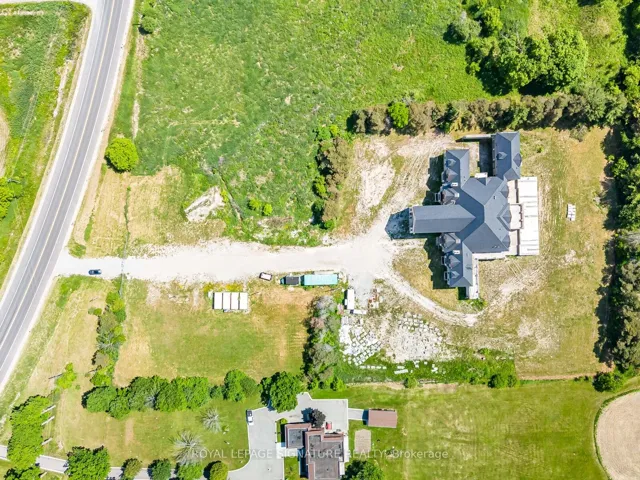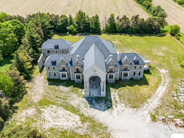 Iconic Masterpiece Ready for Your Vision. An extraordinary opportunity awaits on this sprawling 48.4-acre property to a partially built, 20,000 sq ft unfinished architectural estate home that offers the rare chance to bring your dream residence to life from the ground up. Currently in the pre-drywall phase, this remarkable structure provides the perfect blank canvas to finish and customize every detail to your exact taste. Designed with timeless grandeur in mind, the homes exterior showcases a full stone facade, a stately front porch with a dramatic arched entryway, and large pillars that create an unmistakable sense of arrival. Inside, a spectacular main floor foyer with soaring ceilings sets the tone for the scale and elegance planned throughout the home. The layout includes 8 expansive bedrooms, with most ensuites roughed-in for heated flooring. The future primary suite is designed as a true sanctuary featuring a private walkout terrace, his & hers walk-in closets, and space for an oversized spa-like ensuite. A covered walkout deck from the main floor, a walkout to 1 of 2 triple garages, and thoughtfully planned sightlines add to the homes exceptional flow and function. With residential and commercial zoning, the estate opens the door to a variety of uses whether you envision a luxurious private residence, a family compound, or a live-work lifestyle property with unmatched land value. From the elegant stonework to the expansive footprint, the structure is in place what remains is the opportunity to shape it into something truly iconic. Seize the rare chance to complete a grand estate tailored entirely to your vision. Severance possibility.