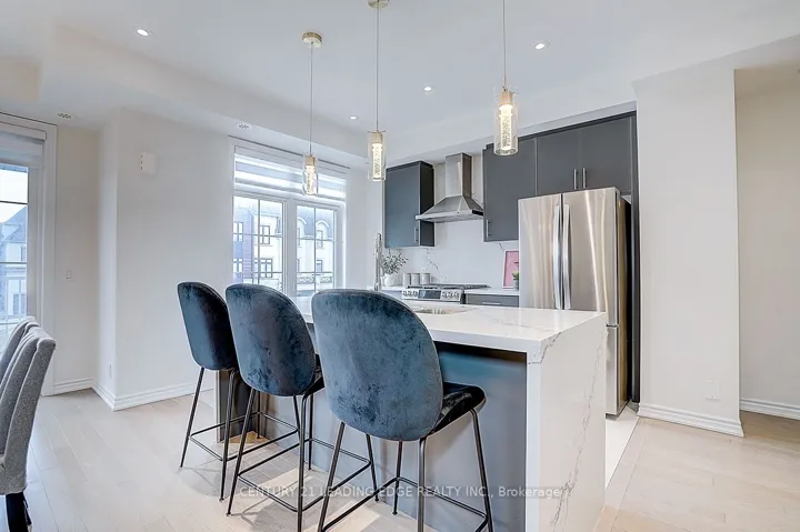 ****PRICED TO SELL! MOTIVATED SELLER!****Welcome to 32 William Shearn Crescent-where modern meets comfortable living in the heart of Angus Glen. This stunning, fully upgraded 3-storey freehold townhouse is a rare find, offering over $50K in premium upgrades with no maintenance fees-perfect for first-time buyers or young professionals seeking style, comfort, and value.This stone and brick townhouse offers no maintenance fees, and 100% freehold, with over $50k in upgrades. Inside, rich natural hardwood flooring carries throughout the upper levels, complemented by a designer staircase featuring custom iron pickets and solid hardwood treads. The second level reveals a bright, open-concept living space featuring: Smooth ceilings, pot lighting, and contemporary designer fixtures. The gourmet kitchen includes marble countertops, a striking marble backsplash, and an impressive waterfall island that anchors the space with both form and function. Premium upgraded stainless steel appliances, including a GE Café gas stove and matching hood, elevate the culinary experience, while automatic Electric Zebra Blinds provide effortless style and privacy. The third floor offers two bedrooms and two beautifully upgraded bathrooms. The primary suite, featuring his/her closets and a 3-piece ensuite. Crowning this remarkable home is a private rooftop terrace – an exceptional outdoor oasis perfect for sophisticated entertaining, tranquil mornings, or evenings under the stars. Additional highlights include an extended-length garage with ample room for parking and storage, as well as a built-in EV charger. Perfectly positioned near top-rated schools such as; Pierre Elliot Trudeau S.S., Buttonville P.S., Unionville College & Angus Glen Montessori.