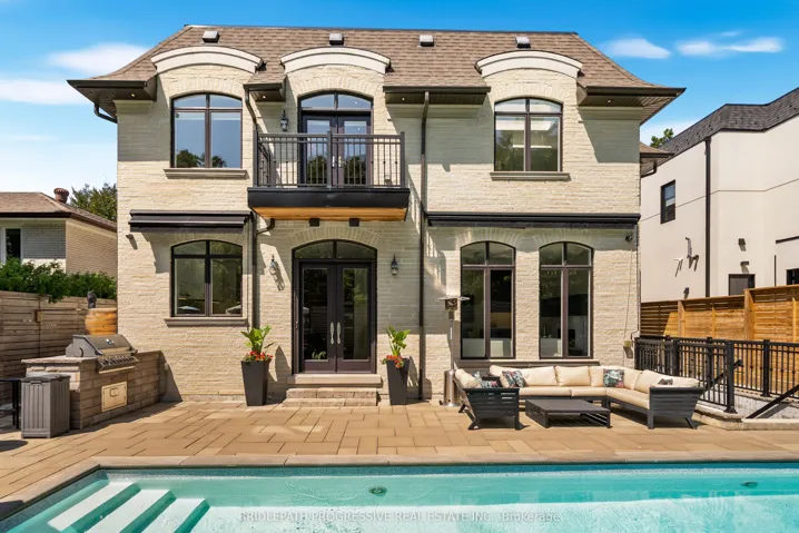 Stunning custom-built luxury residence on a 55 x 120 lot with over 4,200 sq.ft. plus a fully finished walk-out basement. Exceptional craftsmanship throughout with premium finishes, coffered ceilings, and designer fixtures. Gourmet chefs kitchen with quartz countertops, waterfall island, Sub-Zero fridge, Wolf range, Miele coffee maker, and dual Bosch dishwashers. Open family room with custom cabinetry, gas fireplace, and built-in entertainment system. Formal dining with Restoration Hardware chandelier and Hunter-Douglas powered blinds. Four spacious bedrooms each with ensuite baths and walk-in closets. Primary features private balcony, spa-like ensuite with steam shower, soaker tub, Toto washlet, urinal, and dressing room with skylight. Lower level includes games room, entertainment room with kitchenette, gym, and walk-out to landscaped backyard. Resort-style saltwater pool, BBQ station, awnings, pool washroom with HVAC and secure access to city green space. Two-car garage with cedar doors, bike lift, and slatwall system. A rare opportunity to own an elegant, turnkey home in a prime location.