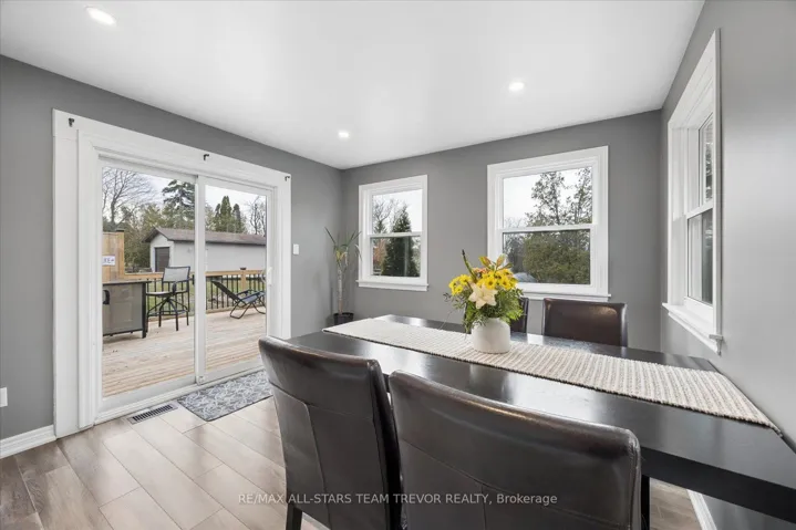 Welcome to this beautifully updated, move-in ready bungalow set on a generous 66 x 160 ft lot, offering the perfect blend of comfort, style, and outdoor living. From the moment you arrive, the home impresses with its modern curb appeal, featuring brand new vinyl siding, soffit, fascia, eavestroughs, exterior pot lights, and new shingles for added peace of mind. Inside, you’ll find a bright and inviting layout with laminate flooring throughout and a spacious living room ideal for both relaxing and entertaining. The charming kitchen with island flows effortlessly into the dining area, where large windows fill the space with natural light and provide direct access to a beautiful new deck-perfect for summer barbeques and outdoor gatherings. The backyard is truly a standout, offering a sun-drenched setting with plenty of space for kids to play, entertain guests, or simply unwind. This well-appointed home features two bedrooms and one bathroom, along with an oversized single-car garage that offers convenient access into the home through the hallway and access the the laundry/storage area. The driveway accommodates up to four vehicles, and additional upgrades include a new furnace and new washer and dryer. With natural gas and full town services, this property delivers both comfort and convenience. Complete with modern exterior finishes, spacious principal rooms, and seamless indoor-outdoor living, this turnkey home is an incredible opportunity for first-time buyers, downsizers, or anyone looking for a move-in ready property with room to grow.