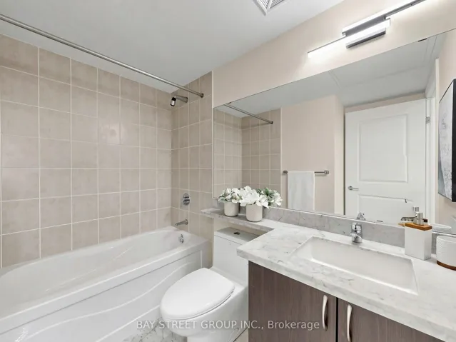 Downtown Markham – Rouge Bijou. Bright and spacious 1+Den suite featuring 2 full bathrooms and approximately 735 sq. ft. of well-designed living space. This south-facing unit offers unobstructed views, 9-ft ceilings, and abundant natural light throughout.The open-concept living and dining area is enhanced by laminate flooring and seamlessly connects to a modern kitchen equipped with granite countertops, stainless steel appliances, a breakfast bar, and ample cabinetry. Step out onto the large balcony to enjoy outdoor living with scenic southern exposure.The primary bedroom features a generous walk-in closet and a 4-piece ensuite bathroom. The versatile den can easily function as a second bed room, home office, or guest space. With two full bathrooms and a highly functional layout, this suite offers both comfort and flexibility for modern living.Ideally located in the heart of Downtown Markham, just minutes to Hwy 7, 404 & 407, Viva Transit, GO Station, Civic Centre, Markham Convention Centre, YMCA, York University campus, and a vibrant selection of shops, restaurants, and entertainment.Residents enjoy premium building amenities including 24-hour concierge, fitness centre, virtual golf simulator, billiards room, theatre room, party room, guest suites, and more.