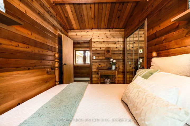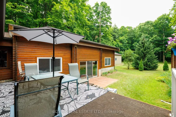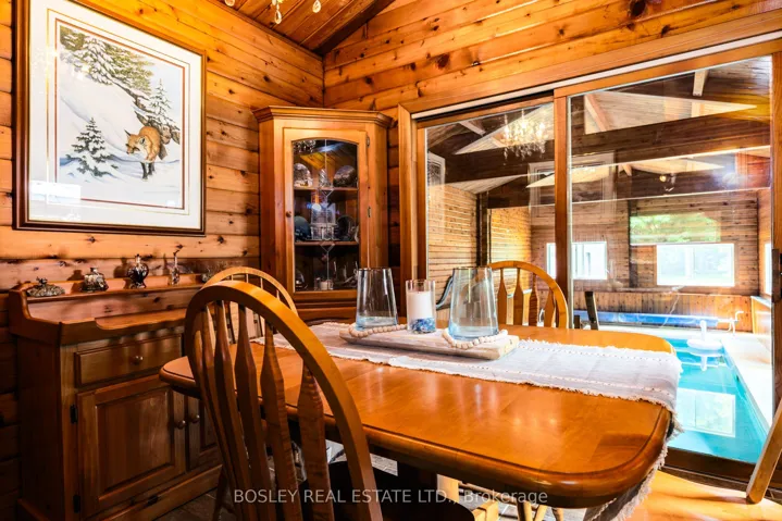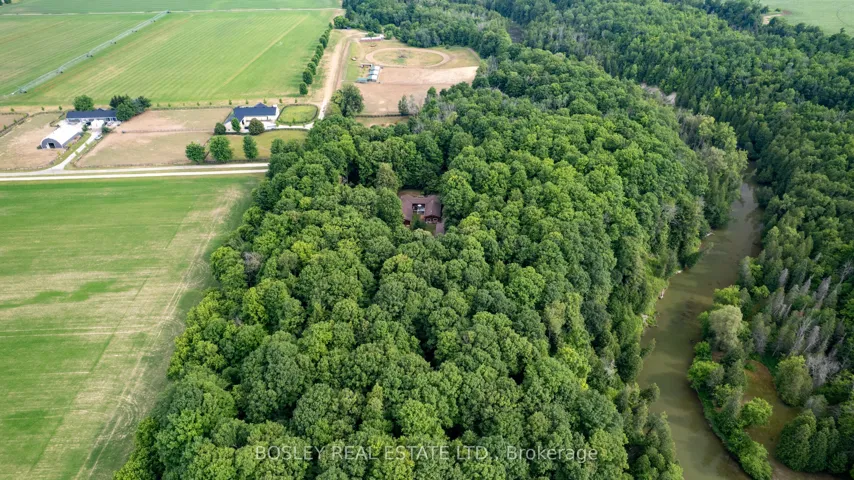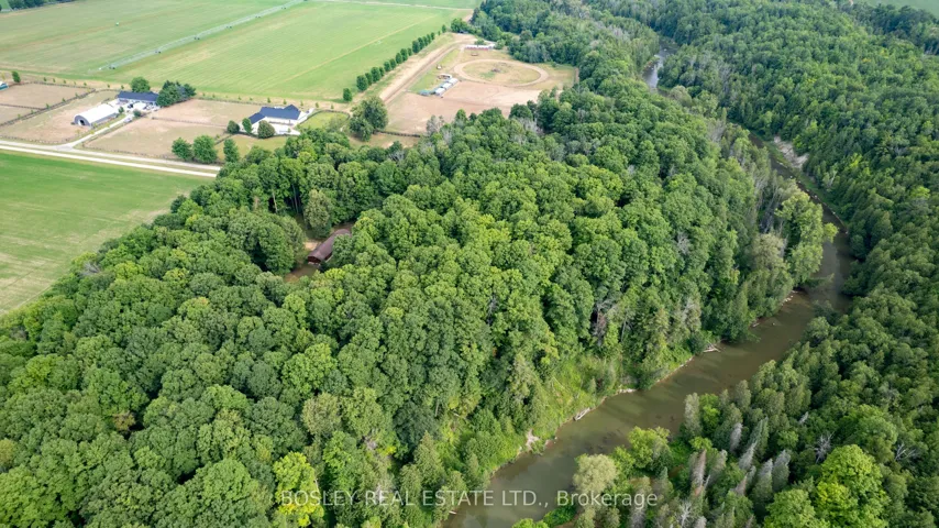 This cozy, Western Red Cedar, double tongue and groove U-shaped log bungalow is nestled on a 14-acre hardwood treed lot. Set back from the road, it is a gorgeous, forested, peaceful spot, surrounded by nature. Bounded by a polo club, farms and 300 meters of the Nottawasaga River, it has walking trails, riding trails, and woods. The 2548 sq ft main floor is a curated blend of country charm and modern conveniences with 2 main floor bedrooms and an office that can easily be converted into a 3rd. The main floor boasts beamed cathedral ceilings, and two wings one with an indoor pool, and the other with a high-ceiling indoor squash/pickleball/basketball half court. Spectators observe the fun from a main floor window, and look out on the indoor pool from the dining room. The pool has a separate shower and change room with basement access. An additional 2156 sq ft in the fully finished basement offers excellent storage, exercise, and entertainment space. A large separate double car (or more) garage/utility shed provides ample space for tools, work benches, and lawn tractors/snowblowers. The birdfeeder hosts all kinds of birds near the kitchen window year-round. The QHT Biasi high efficiency wood fueled boiler uses lot harvested wood to heat your home. Close proximity to Barrie, Thornton and Alliston and the #400 highway provides access to civilization and a curated retreat all in one. You can have a bonfire in the fire pit or a quiet walk in the country and still get to urban activity if that is your preference. Attention investors: this home has great retreat/resort potential with woods, trails, river frontage, space and privacy. Come take a look.