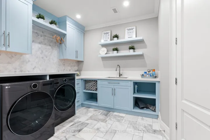 This exceptional custom-built luxury residence set on over an acre of private land is just minutes from downtown Newmarket. Finished in all-natural Quebec sandstone, this architectural home features a private triple driveway and rare four-car tandem garage with custom built-in storage.The grand foyer showcases marble and metal inlay flooring with soaring arched cathedral ceilings. Wide-plank white oak floors, bespoke millwork, and designer lighting flow throughout. The main level offers a heated mudroom with five custom coat closets and a private guest suite with walk-in closet and 4-piece ensuite.The chef’s kitchen is designed for entertaining, featuring dual islands, quartz countertops, custom cabinetry with frosted glass accents, pantry and servery, and premium Thermador appliances including a six-burner range, dual wall ovens, and integrated fridge and freezer. Walk out to a covered loggia with ceiling fans and outdoor TV for year-round enjoyment. Upstairs includes a full laundry room and four spacious bedrooms, each with a walk-in closet and private ensuite. The primary retreat offers a private deck, custom walk-in closet, and spa-inspired ensuite with heated floors, steam dual rain shower, and soaker tub. The walk-out lower level features radiant heated floors, floor-to-ceiling windows, sauna, glass-enclosed gym, second kitchen and dining area, and access to a covered patio. Smart home features include Sonos speakers, motion lighting, central vacuum, dual-zone HVAC, hot water on demand, and steam humidifier.