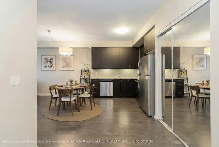 Amazing value in one of Markham’s most convenient and walkable locations “The Mark”, 221-9560 Markham Rd is the perfect opportunity for a first-time buyer, downsizer or savvy investor looking for lifestyle and long-term potential. Enjoy the ease of walking to the GO Train for a stress-free commute, and spend your weekends exploring Main Street festivals, local restaurants, shops, groceries, pharmacies and the surrounding nature trails just steps from your door. This well-managed boutique building offers concierge service and impressive amenities including a gym, incredible party/media/dining area/games room, guest suite, pet wash, car wash and an amazing rooftop terrace w bbq & outdoor garden area. Inside, the 683 sq ft 1 bedroom + den layout has 9 ft ceilings and is bright, open and highly functional, with a proper entryway that leads into a versatile den seamlessly integrated into the living space – ideal for working from home without feeling confined. The upgraded kitchen features granite countertops, stainless steel appliances and exceptional storage including a built-in pantry and front hall closet. The spacious living area accommodates full – sized furniture and opens to a west-facing balcony with high ceilings and large windows that fill the space with natural light-perfect for enjoying afternoon sun or evening summer cocktails. Laminate flooring runs throughout the main living areas for a modern, low-maintenance finish. The bedroom offers generous closet space, wall-to-wall windows and its own walk-out to the balcony, complete with remote control blinds for added comfort and convenience. One underground parking space and locker (locker: approx 5.9 feet by 2.8 feet) are included, making this an outstanding opportunity in a prime Markham location.