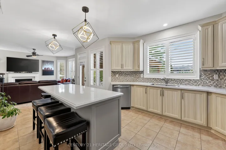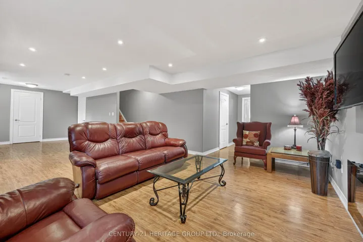 Welcome to 35 Paddison Place-set on one of Alliston’s most sought-after, family-friendly streets. Located in a quiet, established neighbourhood just steps to schools, playgrounds, and scenic trails along the Boyne River, this spacious 2-storey home offers 2,409sf plus a finished basement with in-law potential. The main floor features 9-foot ceilings, custom California shutters, and a bright open-concept layout. A covered front porch leads to a welcoming foyer with powder room and a front den/office-ideal for working from home. The dining and great room showcase engineered hardwood, updated lighting, and a gas fireplace overlooking the backyard. The kitchen offers quartz countertops, tile backsplash, undermount sink, crown moulding, custom island, and Frigidaire appliances including a gas stove. A pantry closet, garage access, and walkout to the covered rear deck add everyday convenience. Upstairs features four generous bedrooms with hardwood floors, ceiling fans, and ample closet space. The updated main bath includes a quartz vanity, herringbone tile, and glass shower. The primary suite offers a walk-in closet and ensuite with soaker tub and separate shower. The finished basement adds flexible living space with a kitchenette, bright rec room with above-grade windows, electric fireplace, 3-piece bath, and a fifth bedroom with walk-in closet-ideal for extended family. Enjoy a landscaped yard with a covered 15′ x 15′ deck, gas BBQ hookup, and stone patio areas. Double garage with built-in cabinetry and parking for four in the driveway. A move-in ready home in an exceptional location-perfect for growing families.