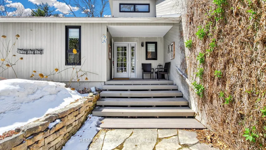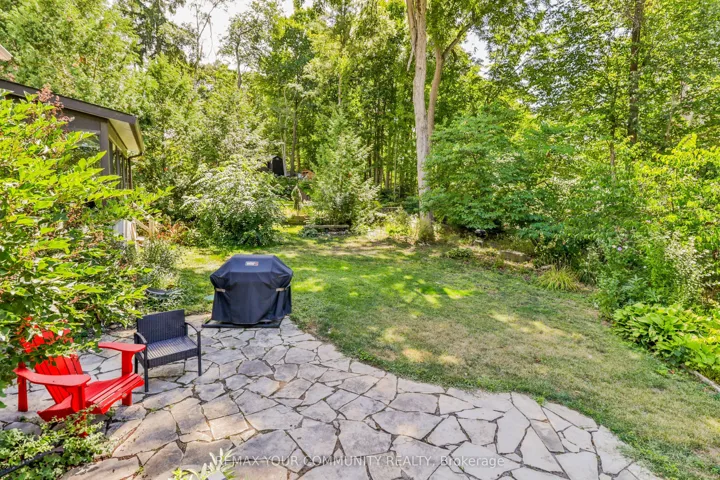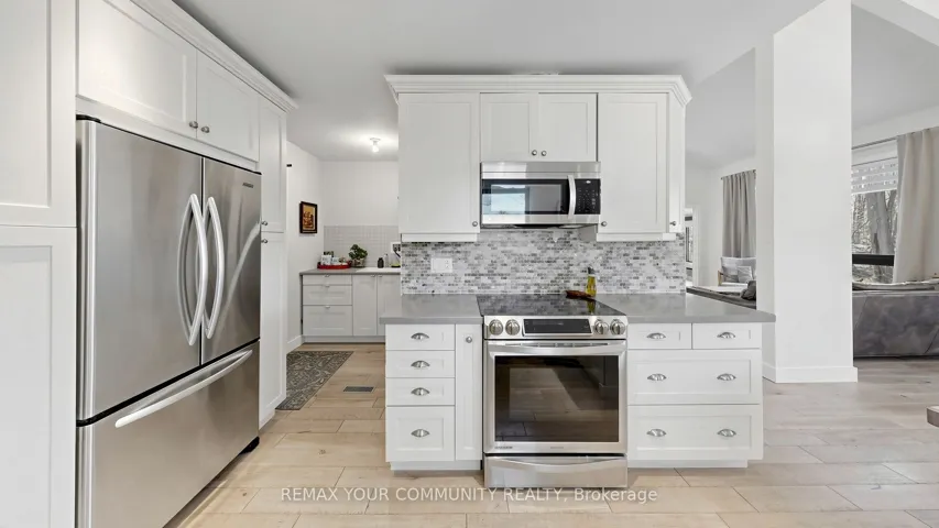 It will take your breath away! Fully renovated contemporary bungalow offering a rare blend of country-style living with deeded access to a private beach. Over 3,000 sq ft of finished living space, includes 3 bedrooms on the main floor with 3 washrooms and finished basement with large crawl space for extra storage. Set on a private treed lot, this home features a bright open-concept main living space highlighted by soaring 20-ft cathedral ceilings, and engineered hardwood flooring on main. The chef’s kitchen is finished with quartz countertops, marble backsplash, and quality appliances, flowing seamlessly into the living and dining areas with extended large windows. There are two walkouts to a beautifully landscaped yard. The main level includes a spacious primary suite with a spa-inspired ensuite featuring a glass shower, skylight, and closet space. One bedroom has been converted into a functional home office, and a convenient main floor laundry adds to everyday ease. The finished basement features quality laminate flooring and offers additional living space with a rec room and bedroom (with two windows), ideal for guests or extended family. Premium finishes throughout include solid wood doors with Italian hardware, Grohe plumbing fixtures, Toto toilets with washlets, and thoughtful upgrades for comfort and efficiency. Most recent updates include a high-efficiency fumace (2023), multi-stage water filtration system (2024), new garage door (2024), epoxy garage floor (2025), and new back porch (2025). Owned tankless water heater. Located steps from deeded access to a private community beach, offering a unique lifestyle opportunity in a serene setting.