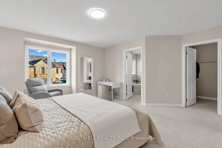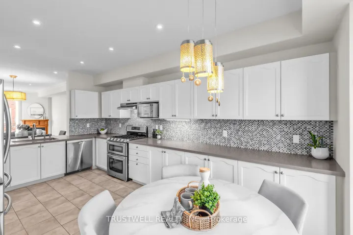 Location is everything-and this freehold townhouse delivers at the highest level. Offering approximately 2,160 sq ft of thoughtfully designed living space, this home is set in an unbeatable location with effortless access to Hwys 407 & 404, transit, and every daily convenience, just minutes from shopping, dining, parks, and top-rated schools-truly at the center of it all. Step inside to a bright, open interior where light and space take center stage. The thoughtfully designed layout offers seamless flow, perfect for both comfortable living and stylish entertaining. Main living areas are elevated by 9 ft smooth ceilings, hardwood flooring, pot lights, and crown moulding, creating a warm yet refined atmosphere. The eat-in kitchen is both striking and functional, featuring quartz countertops, an expansive prep surface, abundant cabinetry, and a layout that overlooks the heart of the home. A desirable south exposure floods the space with natural light throughout the day. Upstairs, enjoy the convenience of second-floor laundry and retreat to a sun-filled, generously sized primary suite complete with a 4-piece ensuite and a walk-in closet with custom organizers, along with two additional well-proportioned bedrooms. A rare opportunity to own a home that perfectly balances lifestyle, comfort, and an exceptional location. St Robert CHS Catchment!