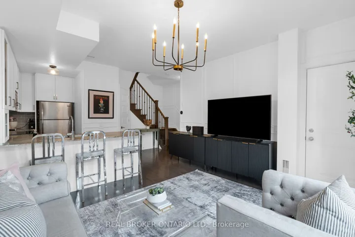 Easy living in the heart of Vaughan. This 2-storey stacked townhome at Fairground Lofts offers the perfect balance of location, layout, and low-maintenance living. Steps to Market Lane, shops, restaurants, and everyday essentials plus easy access to Hwy 7 & 27 and a short drive to VMC Transit Hub. Inside, the open-concept main level feels connected yet functional with hardwood flooring, large windows, and a defined dining area. The kitchen anchors the space with white shaker cabinetry, granite countertops, stainless steel appliances, and a centre island with breakfast bar seating. Upstairs, two well-proportioned bedrooms include a spacious primary with 2 closets. Thoughtful upgrades throughout like wainscoting, dark wood stair treads, and iron pickets give the home an elevated, luxury feel without the luxury price tag. Private balcony overlooking the manicured courtyard. One owned surface parking spot included. Lower maintenance fees than most in the area (water included).Move-in ready and an easy lifestyle. Perfect for first-time buyers, investors, and downsizers alike.