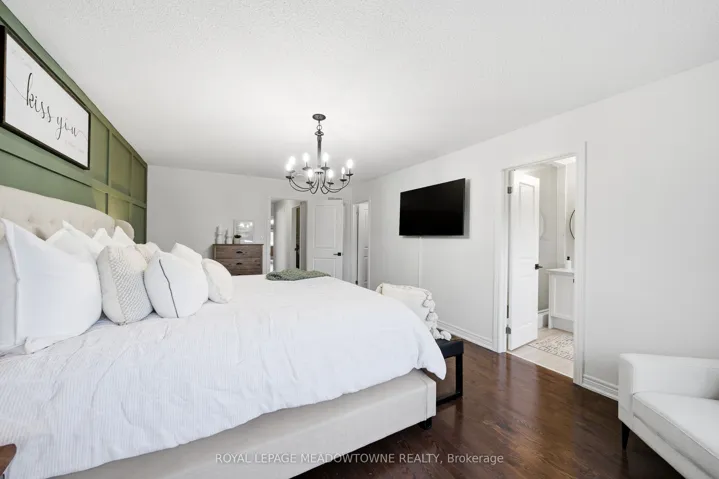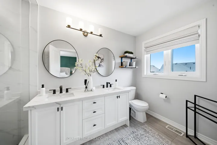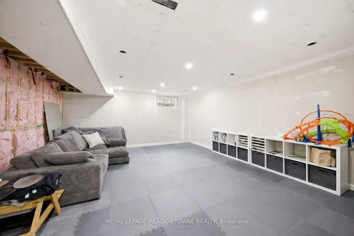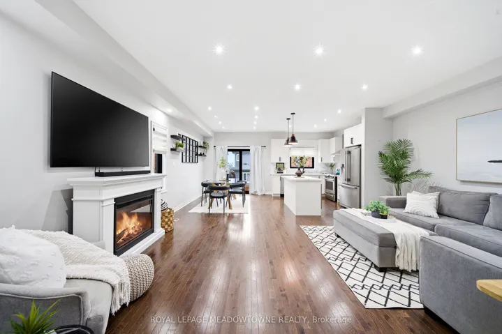Stunning end-unit freehold townhome offering 4 spacious bedrooms and exceptional curb appeal. Interlock driveway and covered front porch provide a welcoming entry with room for seating. The open-concept main floor features hardwood floors and pot lights, highlighting a modern kitchen with quartz countertops, breakfast bar, and a sink overlooking the backyard. Bright and spacious living and dining area includes an electric fireplace and walkout to the backyard-perfect for entertaining. An elegant oak staircase leads to the upper level, where the primary suite boasts a large walk-in closet and a luxurious ensuite with a glass shower. Three additional generously sized bedrooms and a full bathroom complete the second floor. The partially finished basement offers additional living space and future potential. Enjoy a fully fenced backyard with a deck off the walkout and an interlock patio. Ideally located close to parks, schools, and all amenities-perfect for families.