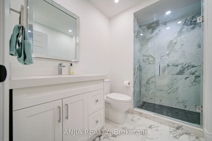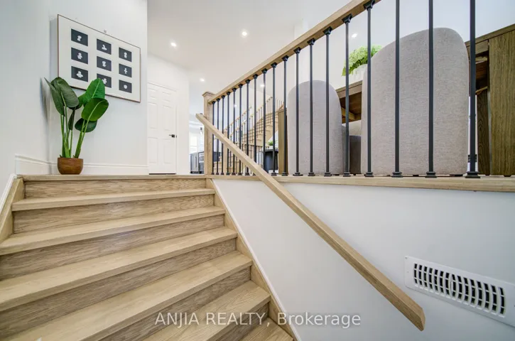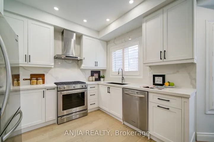 Welcome to this beautifully renovated freehold townhome in the prestigious Angus Glen community-renowned for its top-ranked schools, family-friendly atmosphere, and exceptional walkability. Thoughtfully redesigned with high-quality finishes throughout, this home offers a seamless blend of modern luxury and everyday comfort. The bright, open-concept main floor features premium engineered hardwood, abundant pot lights, and a stylish modern kitchen with extended-height cabinetry, quartz countertops, a full-height quartz backsplash, a spacious island with a built-in beverage fridge and microwave, and quality stainless steel appliances. A wrought-iron staircase adds an elegant touch to the home’s contemporary design. Upstairs, the spa-inspired primary suite includes a beautifully updated ensuite with premium porcelain finishes, a large glass shower with a rainfall head, and double vanities with quartz counters and refined fixtures. All bathrooms throughout the home showcase timeless, upscale selections. The versatile ground-floor bedroom-complete with its own renovated 3-piece bathroom and a large lookout window to the backyard-is ideal for guests, in-laws, or a private home office. Enjoy multiple outdoor spaces, including a large interlocked patio, a second-floor deck, and a welcoming front balcony-perfect for relaxing or entertaining. Steps to The Village Grocer, Montessori schools, parks, Angus Glen Community Centre, golf courses, and minutes to major highways. Zoned for top-ranked schools, this home delivers a complete lifestyle package in one of Markham’s most desirable neighbourhoods.