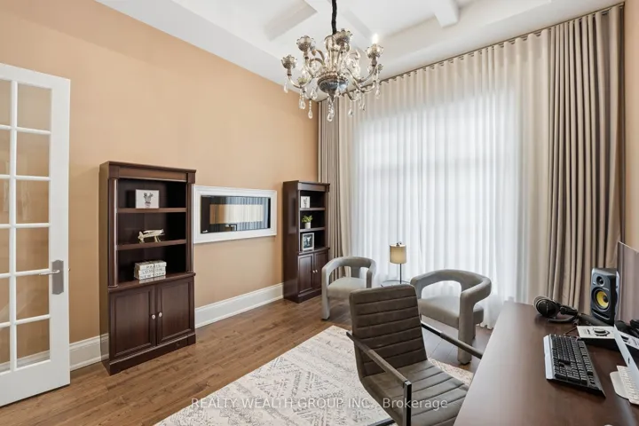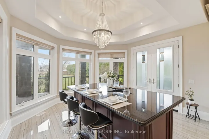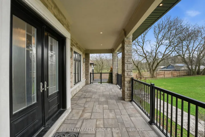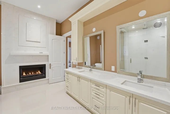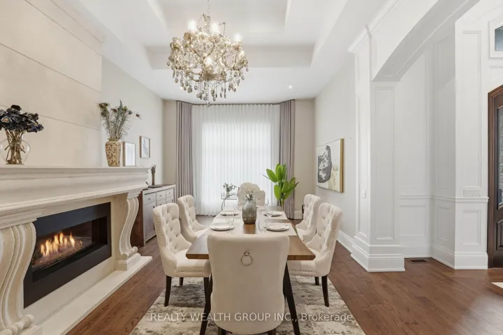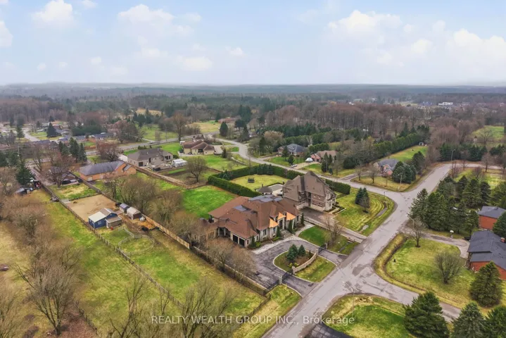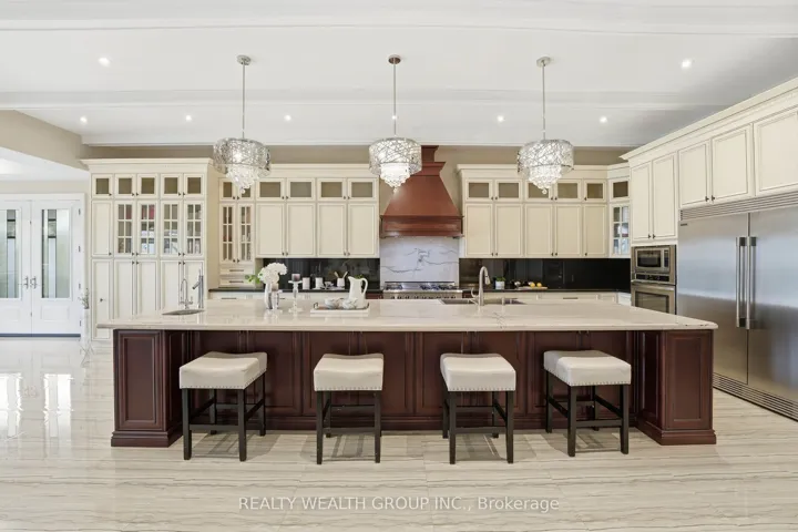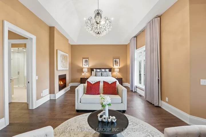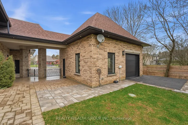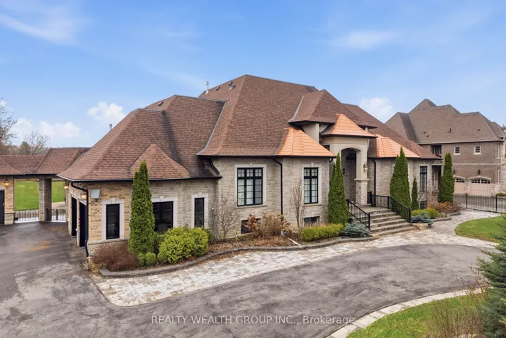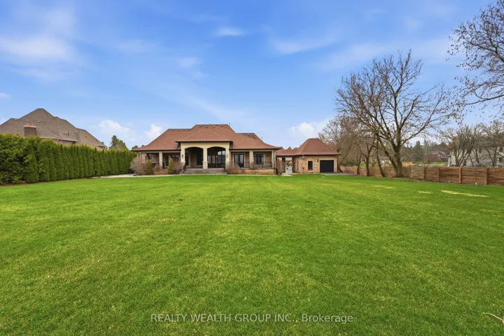 Welcome to a home where presence meets precision. Set on a private, fully fenced acre, this custom-built estate makes a statement before you even step inside. A circular driveway framed by professional landscaping, custom interlock with built-in lighting, and a gated entrance leads you to a striking stone façade accented with copper roofing and black-trimmed windows. With parking for 14 and a rare 4-car garage configuration (2 attached, 2 detached), every detail has been designed for both function and impact. Inside, a grand 9-ft custom walnut door opens to soaring 12-ft ceilings, oversized porcelain tile, and rich 5-inch Canadian ash hardwood flowing throughout. Arched entryways, 9-inch baseboards, and custom millwork elevate every space, while chandeliers and pot lights create warmth and scale. The heart of the home is a showpiece kitchen with heated porcelain floors, dual islands (15-ft prep + 9-ft seating), quartz and marble finishes, a gas range with pot filler, wine fridge, and premium appliances-all seamlessly connected to a cathedral-ceiling living space anchored by stunning stone fireplaces. This home offers 3 fireplaces, including a rare double-sided feature between the primary suite and spa-inspired ensuite. Built for comfort and efficiency, the property includes 2 furnaces, 2 A/C units, 2 owned hot water tanks, HRV systems, humidifiers, water softener, and a full irrigation system. Enjoy sunset views from the covered outdoor living space with custom ceilings, lighting, and privacy between homes. Luxury, scale, and craftsmanship-this is a home you feel the moment you arrive.